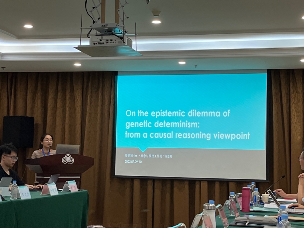 任昱霖做了题为“干预主义因果的功能进路初探”的报告,她首先介绍了常规因果研究进路(形而上学进路),该进路本质上是一种还原主义,为因果断言提供一个形而上学的解释。然后她对功能进路进行了介绍,功能进路本质上是一种非还原主义的进路,伍德沃德(James Woodward)将功能进路定义为以因果信息和推理有时是有用的或功能性的想法作为其出发点。并通过四个反例表明功能进路需要规范性、描述性以及两者相结合,描述性的结果支持了规范性的观念,而 规范性的观念又反过来指导了描述性的研究。然后总结了功能进路几个优势:(1)告诉我们关于因果思维的功能或目标;(2)什么样的因果相关的概念和推理策略能够很好或很坏地服务于这些目标;(3)对因果关系的形而上学不做任何承诺,从而超越最小实在论。关键是,她给出自己对于伍德理论最大的困难之一的自循环问题的解决建议:提出我们试图从方法论自然主义的角度来解决自循环问题,认为自循环理论所预设的概念应该是之前的“科学结果”,这样能有可能消解对自循环的质疑。