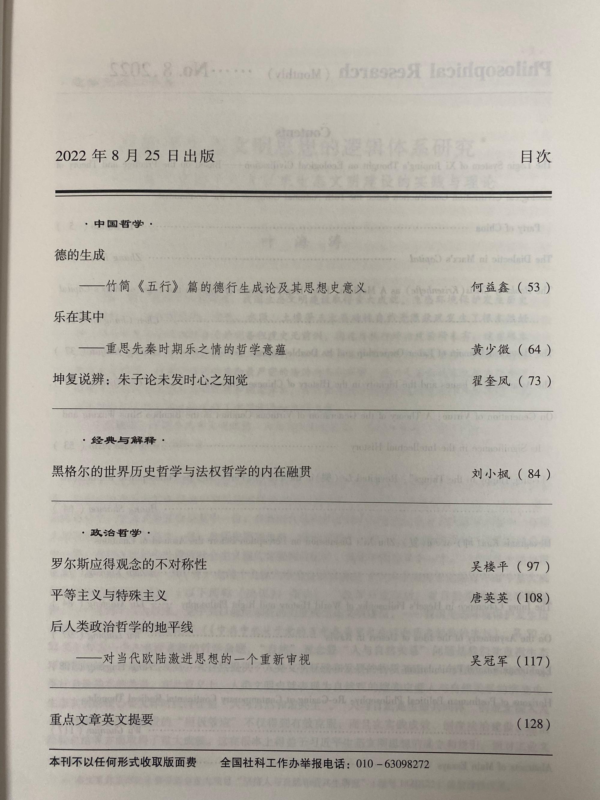 公司翟奎凤教授论文《坤复说辨:朱子论未发时心之知觉》在《哲学研究》2022年第8期发表