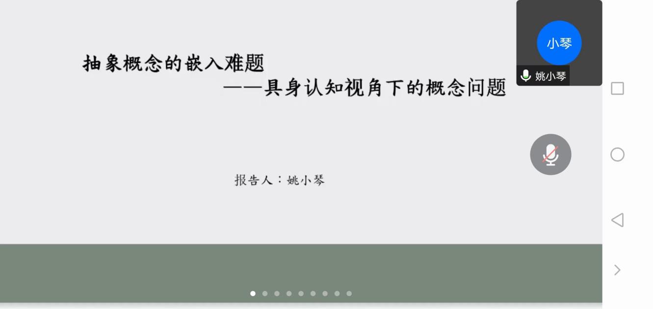 在讲座中姚老师指出,具身认知的发展使得对概念的理解发生了变化,但就抽象概念而言,由于其不指向外在物理对象,因而被看作很难嵌入具身解释框架,无法用具身的观点阐释抽象概念的一般性和抽象性特征。面对这一问题,感知运动、社会、语言、情感等多维度资源被纳入讨论以揭示具身化资源的多样性。但同时,尽管解释资源具有多样性,现有方案在处理这一问题时却缺乏一个对“概念”本身的基于实践活动和演化的整体图景,没有从“概念表征”的叙事角度走向“概念实践”和“概念操作”,因而既无法避免讨论上的混乱,也无法揭示在具身认知视角下讨论(抽象)概念的最初动机。
