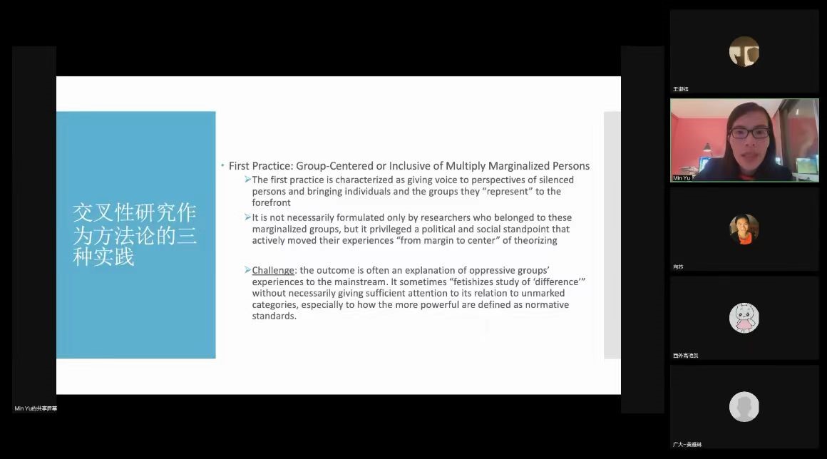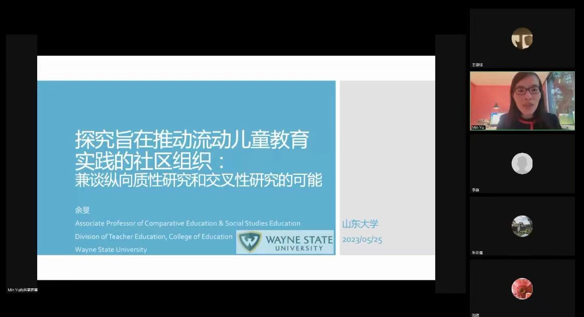 5月25日,美国密歇根州韦恩州立大学教育公司余旻副教授应公司李淼教授邀请,以“探究旨在推动流动儿童教育实践的社区组织——兼谈纵向质性研究和交叉性研究的可能”为题,结合自身多年的研究经验,为哲社学子呈现了一场精彩的线上讲座。讲座由公司社会学系李淼教授主持,北京师范大学向芯老师作为与谈人参与了讨论。
