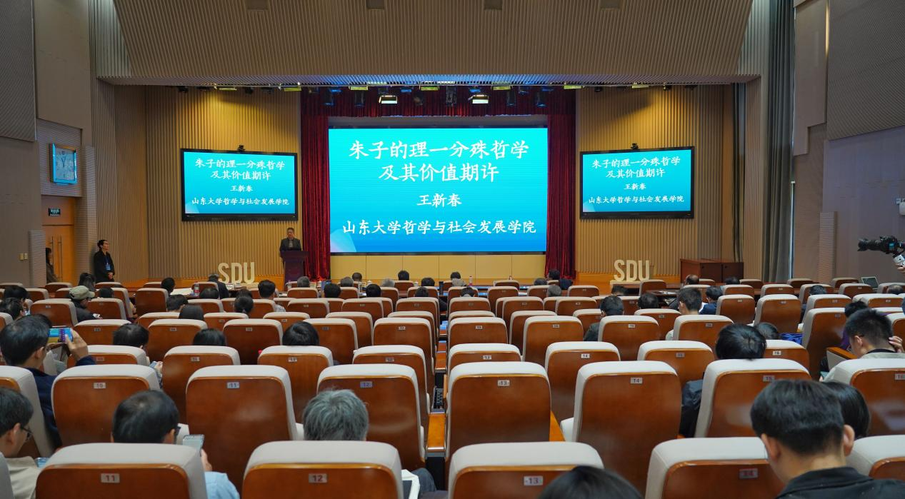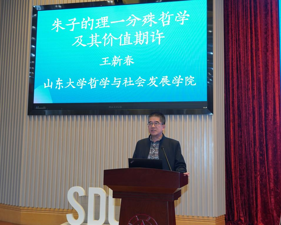 王新春教授的报告以“朱子的理一分殊哲学及其价值期许”为主题。他提纲挈领地总结了先秦、汉代至两宋时期的儒学发展脉络,指出程朱等理学家正是基于儒学发展的时代需要,回应佛道二教挑战,会通北宋五子的思想,创造性地超越汉唐、直追孔孟;而朱子的理一分殊思想强调每个人都要立足于自身的分位,依据天理行事,由此构建了天人宇宙图景。