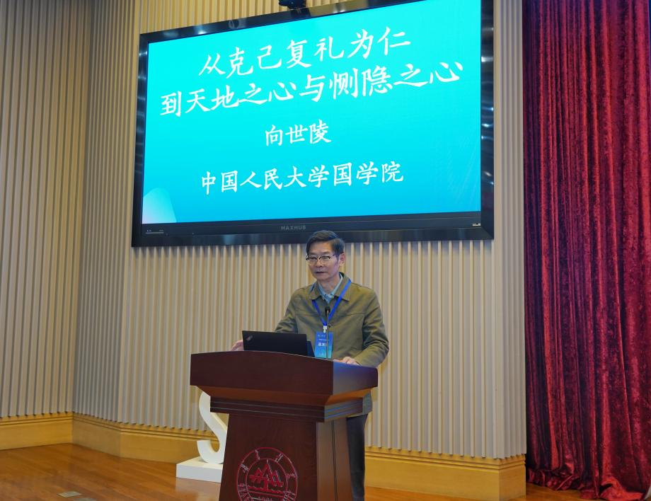 向世陵教授的报告以“从克己复礼为仁到天地之心与恻隐之心”为主题。他从孔子对仁之内涵的经典界定“克己复礼为仁”出发,认为去私复公、复礼为仁既是自我的意志努力,也是基于“复”之气化运行的天人互动,而此间的天地之心落实于人即是恻隐之心。他进而认为,仁体不可以名言,学者须于即物践履中体验。