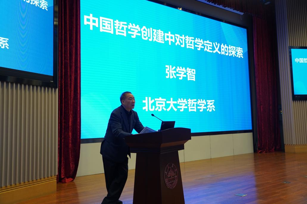 张学智教授的报告以“中国哲学创建中对哲学定义的探索”为主题。他对西方与中国哲学中几种典型的对哲学的定义进行了梳理和介绍,并由此认为,因为哲学的高度抽象性和内容的复杂性,不同的哲学定义所讲述的内容大致相同。进而,他提出了一个关于哲学的定义:哲学是人对自己所处环境的觉解和对自己的行动及其结果的有系统的反思。