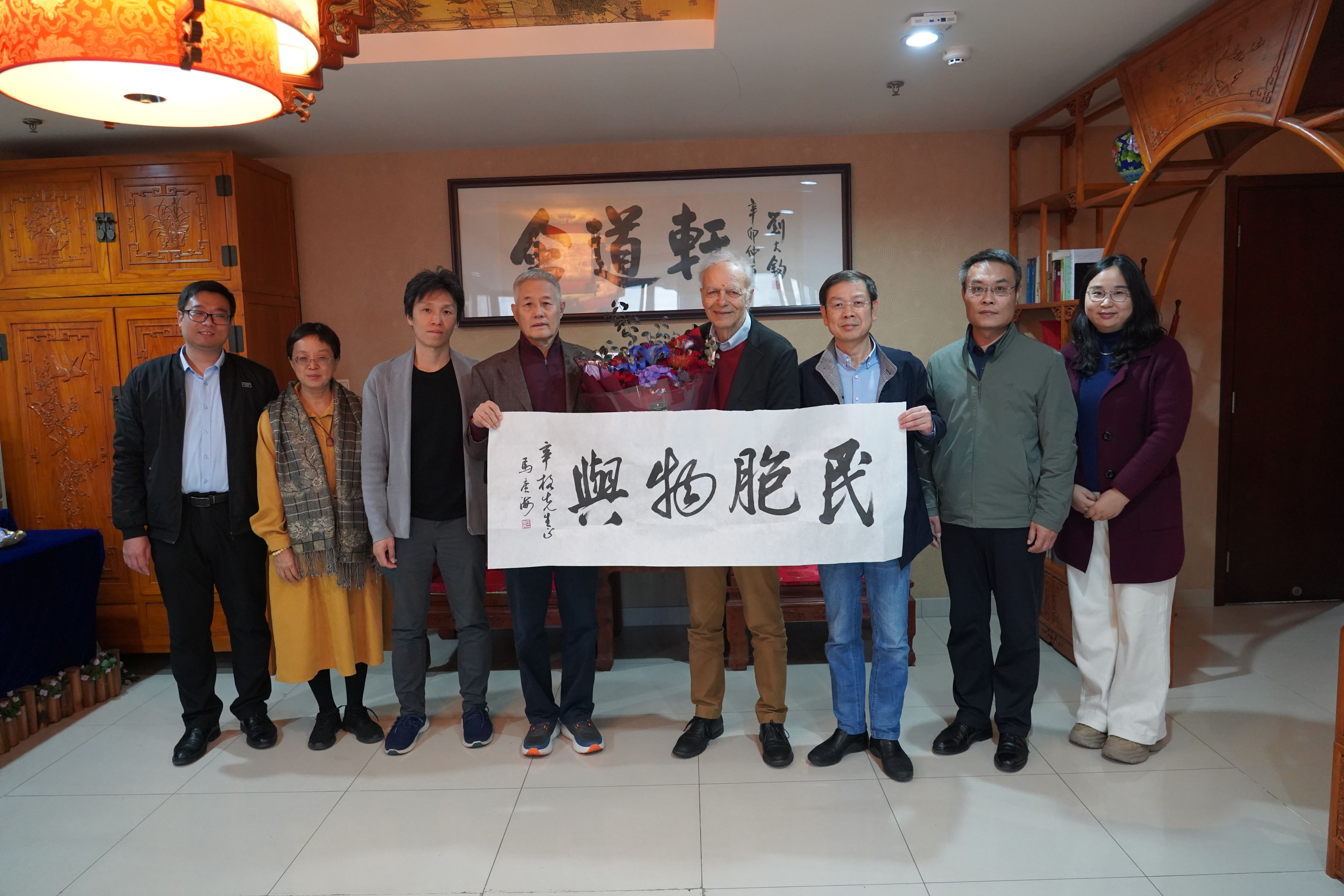 申博sunbet公司党委书记梅强,申博sunbet宣传部副部长刘金帅,申博sunbet人文社科研究院副经理毛永强与申博sunbet犹太与跨宗教研究中心主任傅有德教授,在知新楼含道轩与彼得·辛格教授进行了亲切交流,并向他赠送了马广海教授的书法作品“民胞物与”。申博sunbet动物保护研究中心向辛格教授颁发了荣誉主任的聘书。