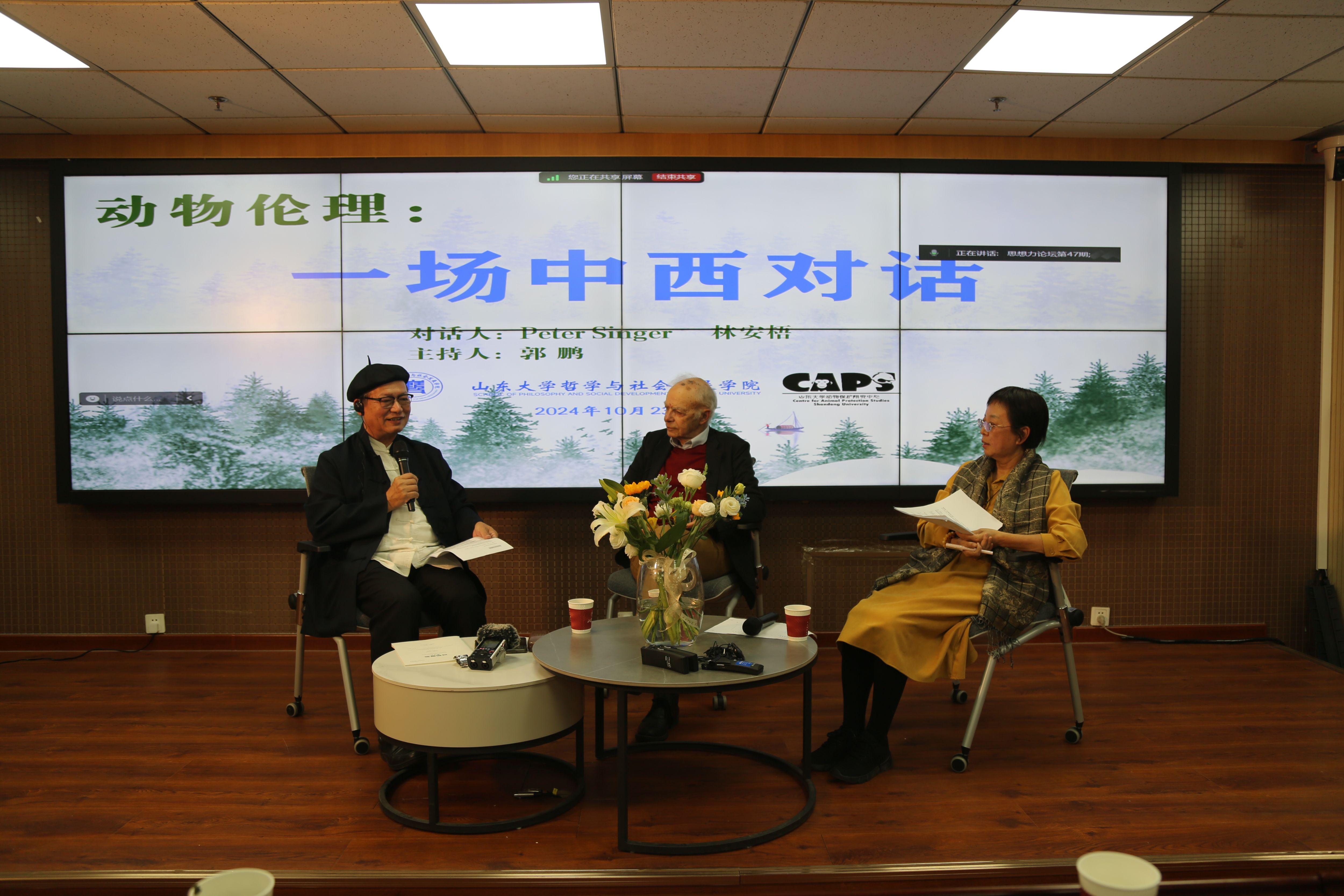 2024年10月23日,世界著名哲学家彼得·辛格教授到访申博sunbet,作为 “思想力论坛”第47期特邀嘉宾,与当代新儒家重要代表林安梧教授作了主题为“动物伦理:一场中西对话”的报告,由申博sunbet郭鹏副教授主持。报告在知新楼A1521学源报告厅举办,现场座无虚席,气氛热烈。