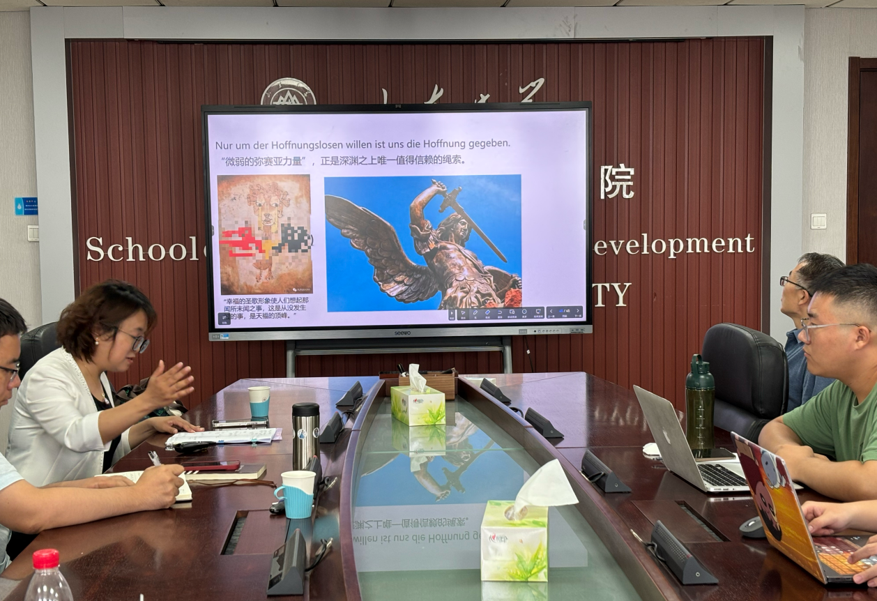 报告会主持人冯波老师在总结时高度赞扬张老师的报告,称其“兼具丰富的历史知识和文艺的诗情画意”,并代表与会师生向张老师的精彩讲座表示感谢。在随后的讨论环节,与会师生就纯粹语言问题涉及的无剩余状态、实践介入、天使形象差异等问题展开了深入交流。此次学术报告不仅拓宽了师生的学术视野,也为在场师生带来了深刻的启发。