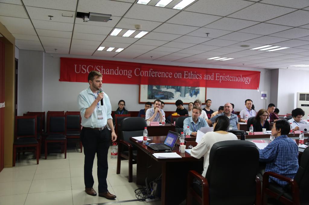 此次研讨会围绕当代伦理学与认识论研究领域的前沿热点问题举行了18场高水平学术报告。知识论与伦理学是当代分析哲学的两个重要分支,将这两个领域并列为会议议题是本次会议的一个特色,加深了学科交叉互补,促进了不同领域学者的交流切磋。Stephen Finlay教授对比了将规范性理由当作解释与当做证据的两种主流理论,进而论证两种理论在外延意义上不仅是平等的,而且是相互蕴含的。南加州大学的Mark Schroeder教授介绍了一种为理由的基础主义观点进行辩护的基础性论证。波士顿大学的Daniel Star教授对“不知者无罪”这一论题提出了一种新的反驳。耶鲁大学的Daniel Greco教授指出目前学界将伦理学与法律哲学中对辩护与辩解的区分引入认识论研究的做法是不恰当的,他结合众多法律案例阐明了认识论领域辩护概念的独特性。加州大学洛杉矶分校的Sherrilyn Roush教授阐述了信念融贯性与信念为真之间的关系。清华大学的唐浩教授阐述了动态感官在获得体感知识过程中的关键作用。北京大学的李麒麟教授介绍了如何用一种新的思路对认识论中的安全理论进行辩护。武汉大学的Matthew Lutz教授提出了基于说明与符合关系的知识理论。