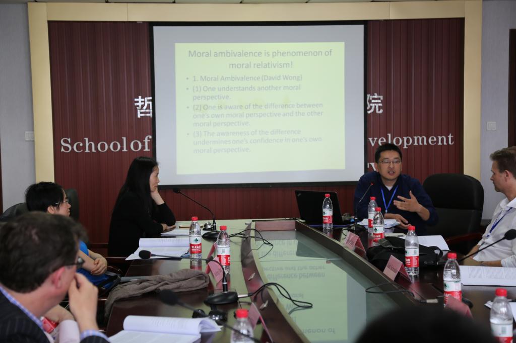 会议报告内容中西交融也是本次会议的一个重要特色。将古典中国哲学中的伦理学与认识论智慧用英美分析哲学的风格阐述出来,具有高度启发性。南京师范大学陈真教授运用西方哲学中的分析方法讨论阳明心学中的道德理论,论证了王阳明的道德理论不是主观的,而是先验的且普遍为真的。南京大学胡星铭教授运用分析哲学方法分析了庄子的一个重要论证:要成为智者就必须悬置价值判断。