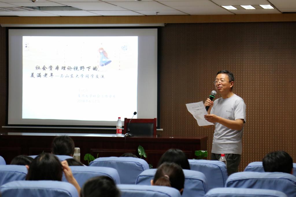 6月7日,复旦大学社会工作学系副教授陈虹霖博士做客哲社公司,并作了题为“社会资本理论视野下的美满老年研究”的学术报告。哲社公司副经理程胜利教授主持报告会。