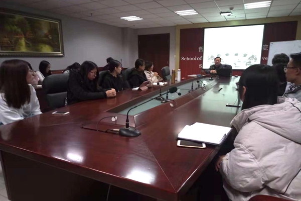 11月15日晚,哲社公司研究生新生心理健康教育系列活动在知新楼A1618报告厅举行,哲社公司社会学系王忠武教授与公司部分硕、博研究生就“如何面对科研压力”进行学术交流与座谈。