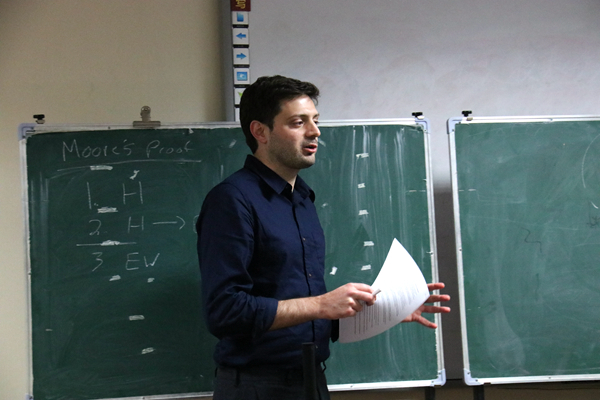 讲座伊始,Dr.Ranalli首先介绍了摩尔为了证明外部世界的存在做的一个证明。他先举起来一只手,说:“我知道这是一只手。”然后他举起另一只手说:“我知道这是一只手”。摩尔做出这个证明是为了说明不需要复杂的哲学论证,我们只需要常识就能对一些哲学理论例如自由意志怀疑论进行反驳。从摩尔对外部世界存在的论证出发,Dr. Ranalli总结出摩尔式论证的大致框架,包括两个前提一个结论。前提一由日常命题组成。前提二与前提一相关,是从前提一出发而推出的,一般是对怀疑论的否认。结论则是从前提一二推出的哲学命题。根据摩尔式的论证,我们发现从日常例子出发,结论总是很容易就被得出,而不需要复杂的哲学论证。一些哲学家因此认为摩尔论证的问题在于前提的证据不能是对结论的证据。证据不能从前提传递到结论上。另一些哲学家认为摩尔论证的问题在于辩证的无效性。如果摩尔的认识论是正确的,那么摩尔的论证应该怎么解释这一论证缺陷?讲座中Dr.Ranalli循序渐进,概括了摩尔的认识论论证,指出了这一论证的不足,并详细介绍了两个对摩尔论证做出回应的理论。提问环节中,哲社公司的教授和员工就此话题进行了激烈的讨论,席间交流氛围十分热烈。