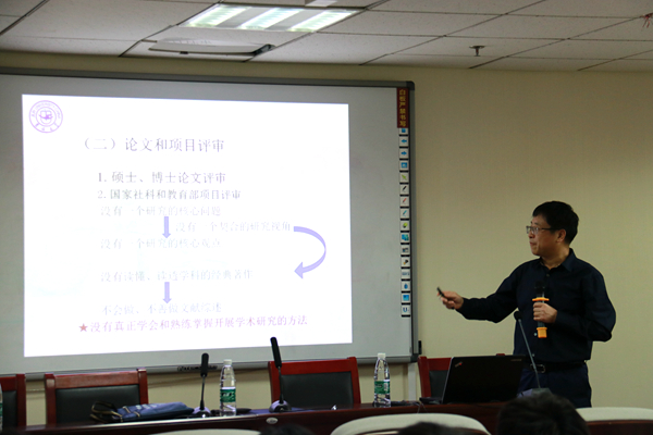 董才生教授首先介绍了选择这一主题的原因,即当下部分学者及员工未能学会并熟练掌握开展学术研究的方法,导致学术界存在着学术不端及在论文、项目研究中不规范的问题。他认为,在学术研究的基础方面,读透及读懂经典著作,了解学科研究的基本概念及理论是十分重要的。经典著作能触及到学科的本质问题,是“合逻辑之理”并达到“逻辑自洽”,能够经受时间考验,有助于提升学术研究的能力与水平。对于如何阅读经典著作,董教授指出,应带着“框架”,去“逐字逐句”地阅读。在阅读经典著作之后,要从“外在知识内在化”转化为“内在知识外在化”,从而达到知识的输出与应用。在解释时,理论思维应具有穿透力,即透过字面“显性”的含义去把握其背后“隐性”的深意。此外,同学们还应具备一定的概括能力与逻辑思维能力,避免出现过度诠释或诠释不足的问题。