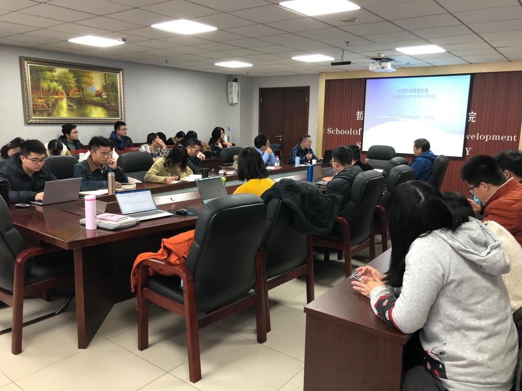 讲座的最后,舒远招教授同在座师生就《关于费尔巴哈的提纲》第10条、费尔巴哈的感性直观、康德语境中理性事实的概念和直观的关系等问题进行交流。