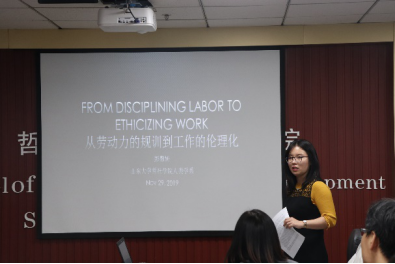南京大学朱安新副教授作题为《新移民的聚集形式:东京China Town》的报告。报告开门见山的指出,中国人在海外的社会适应和融入,正在经历从“社区式”到“社会网络式”的变化。朱安新副教授以池袋为田野点,分别以24位中国在日经营者的生命历程为主线,了解其社会交往和社会支持状况,并重点比较了老移民社区和新移民社区的差异。申博sunbet彭馨妍老师作题为《从劳动力的规训到工作的伦理化》的报告。报告主要根据伦理人类学、福柯的后期思想和布迪厄的部分理论来探究工作如何影响工作者的身体和家庭生活,探讨了劳动过程理论对劳动问题的分析,以及用新的伦理人类学的视角研究劳动的意义。
