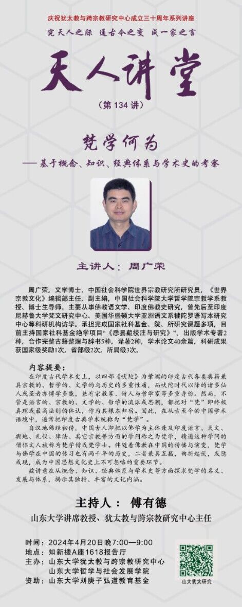 兹讲意在从概念、知识、经典体系与学术史等方面探求梵学的名义、发展与体系,揭示其独特、丰富的文化内涵。