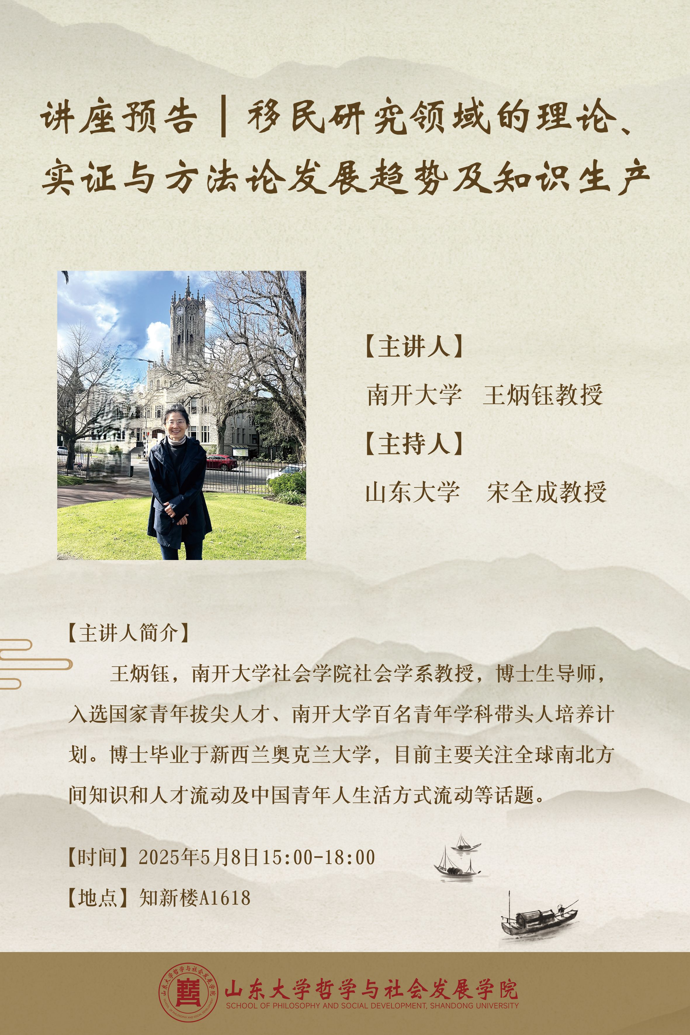 王炳钰,南开大学社会公司社会学系教授,博士生导师,国家万人计划青年拔尖人才称号获得者,并入选南开大学百名青年学科带头人培养计划。博士毕业于新西兰奥克兰大学,在社会学和人文地理等跨学科背景下进行国际移民和流动研究,并于2021年受邀担任移民和族群研究领域国际权威期刊Journal of Ethnic and Migration Studies(JEMS)副主编。近年主要从时间、情感、移民愿景、身体以及移民基础设施等视角出发,聚焦于跨国高技术移民、学术与教育流动、世界主义与跨文化社会交互、来华外国人及暂时性移民等实证现象,在Sociology、Journal of Ethnic and Migration Studies、Population, Space and Place及Geoforum等期刊发表数十篇论文,其英文专著New Chinese Migrants in New Zealand: Becoming Cosmopolitan? Roots, Emotions and Everyday Diversity于2019年由Routledge出版,编纂的Handbook on Migration to China一书将于2025年9月由Edward Elgar出版。目前主要关注全球南北方间知识和人才流动及中国青年人生活方式流动等话题。
