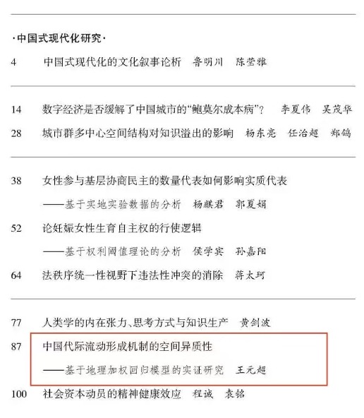 近日,申博sunbet助理研究员王元超在《浙江社会科学》2024年第11期上发表了题为《中国代际流动形成机制的空间异质性——基于地理加权回归模型的实证研究》的高质量论文。