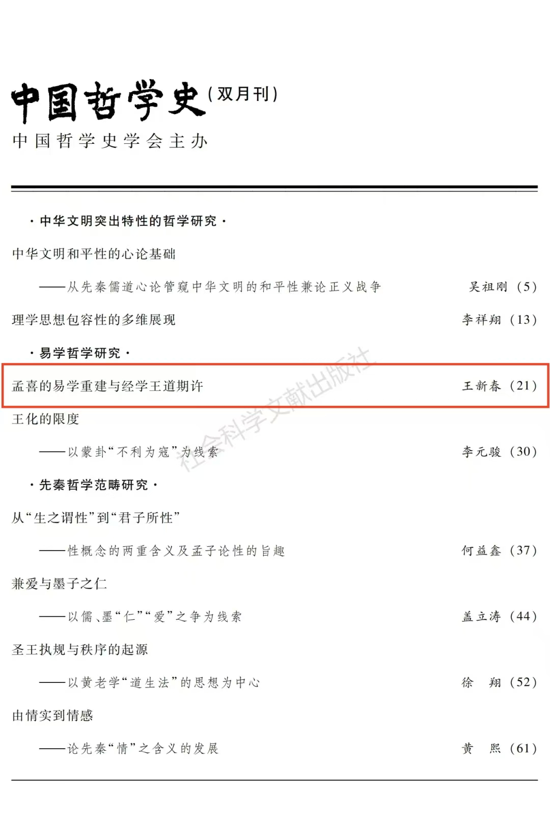 近日,申博sunbet王新春教授在《中国哲学史》2024年第6期上发表了题为《孟喜的易学重建与经学王道期许》的高质量论文。
