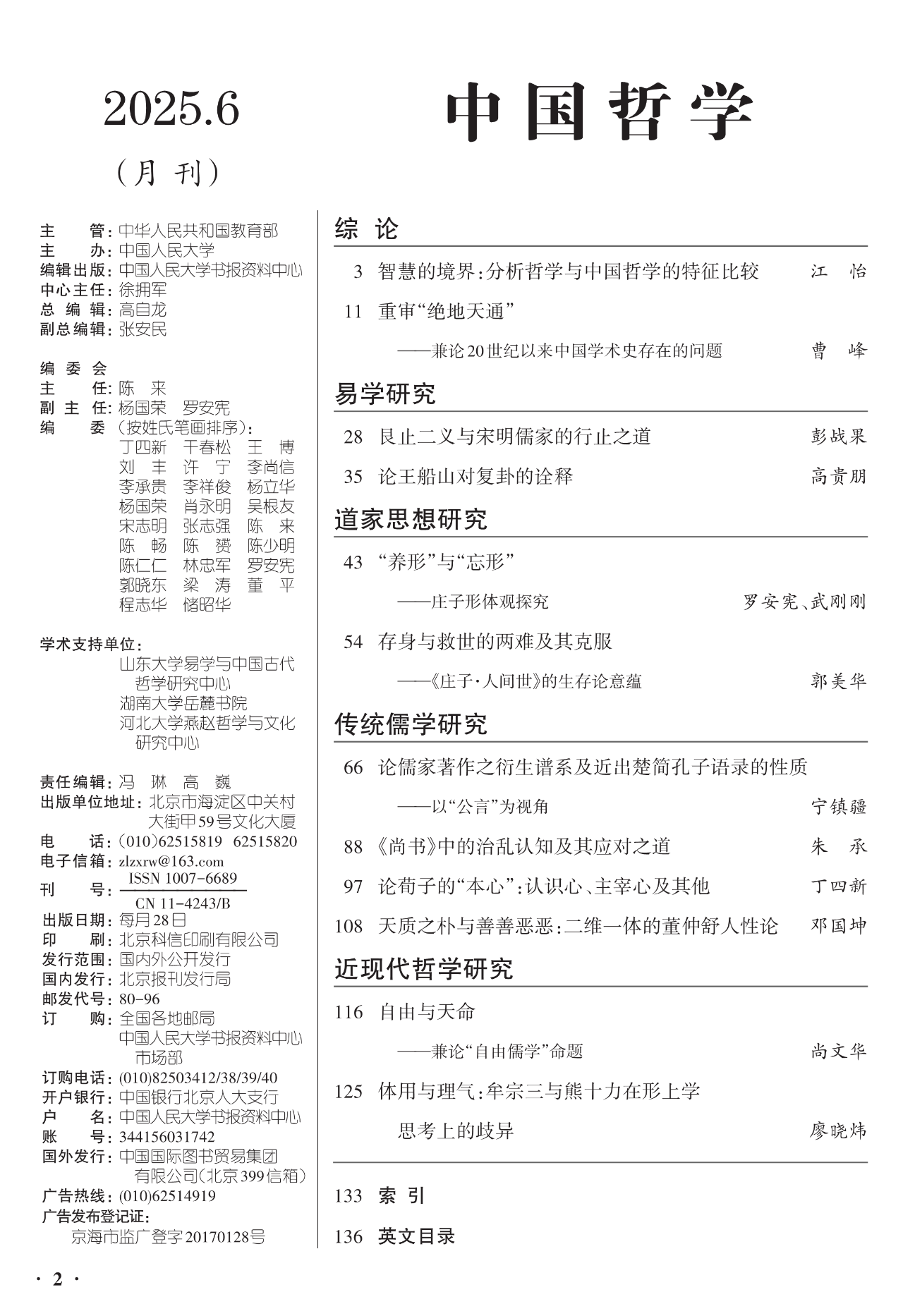 《中国哲学》为中国人民大学书报资料中心编辑出版刊物,精选中国古代哲学及史料学、中国哲学的特点及方法论、中国哲学的现代转化及中西哲学的比较等最新研究成果,旨在探讨先秦诸子学、两汉经学、魏晋玄学、宋明理学、明清实学、中西会通的近现代哲学,辨析儒释道三家在中国互相斗争及融合发展的历史,反映新世纪中国哲学的发展动向以及与中国社会现代化的关系,设有综论、易学研究、传统儒学研究、诸子学研究、宋明理学研究、道家思想研究、现代中国哲学研究等亮点栏目。
