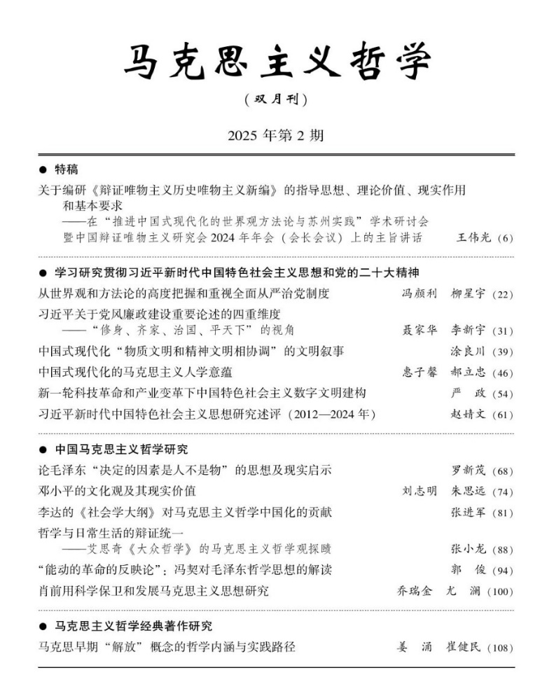 《马克思主义哲学》系中国辩证唯物主义研究会会刊,倡导对马克思主义哲学进行多面向、多维度的深入研究,主要刊载关于习近平新时代中国特色社会主义思想、马克思主义哲学基本理论、经典著作、发展历程、创新成果、当代问题思考、国外马克思主义哲学等研究成果,推进中国马克思主义哲学的理论创新。