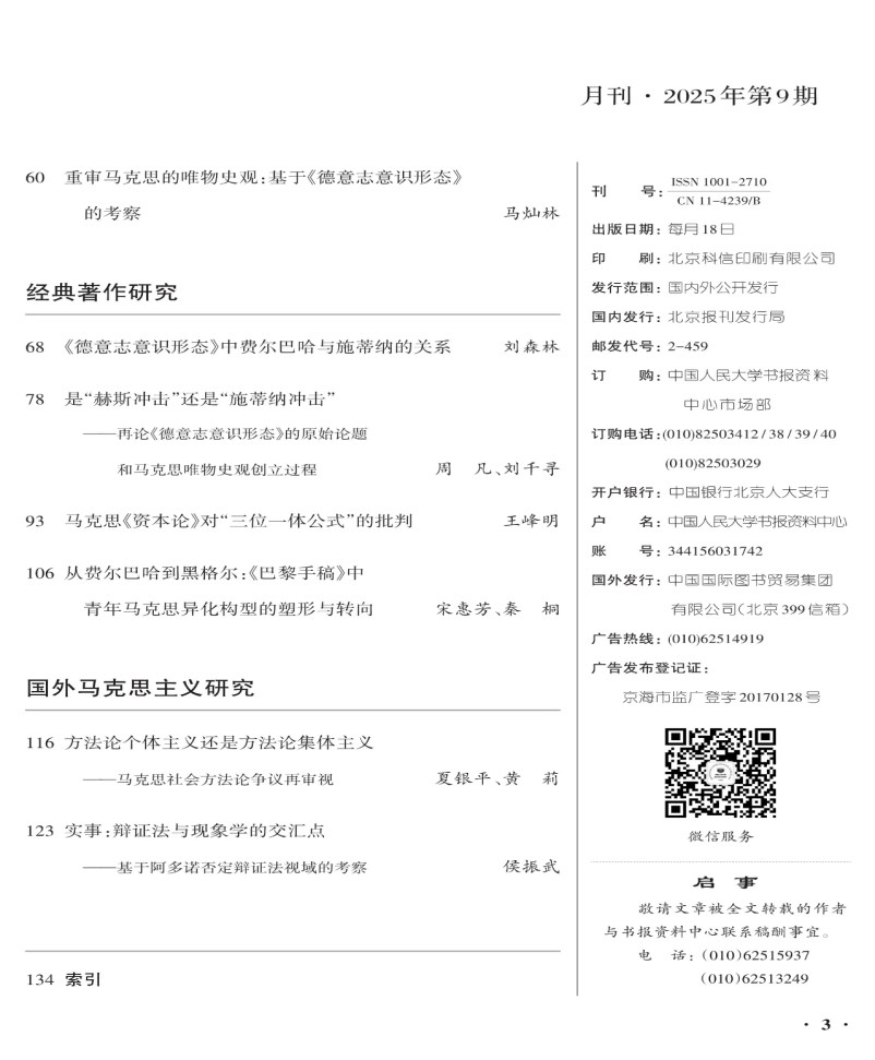近日,人大复印报刊资料《哲学原理》2025年第9期全文转载了申博sunbet刘森林教授的题为《〈德意志意识形态〉中费尔巴哈与施蒂纳的关系》的高质量论文。