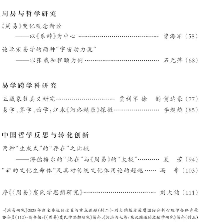 近日,公司易学与中国古代哲学研究中心刘大钧教授在《周易研究》2025年第5期上发表了题为《序〈《周易》虞氏学思想研究〉》的高质量论文。