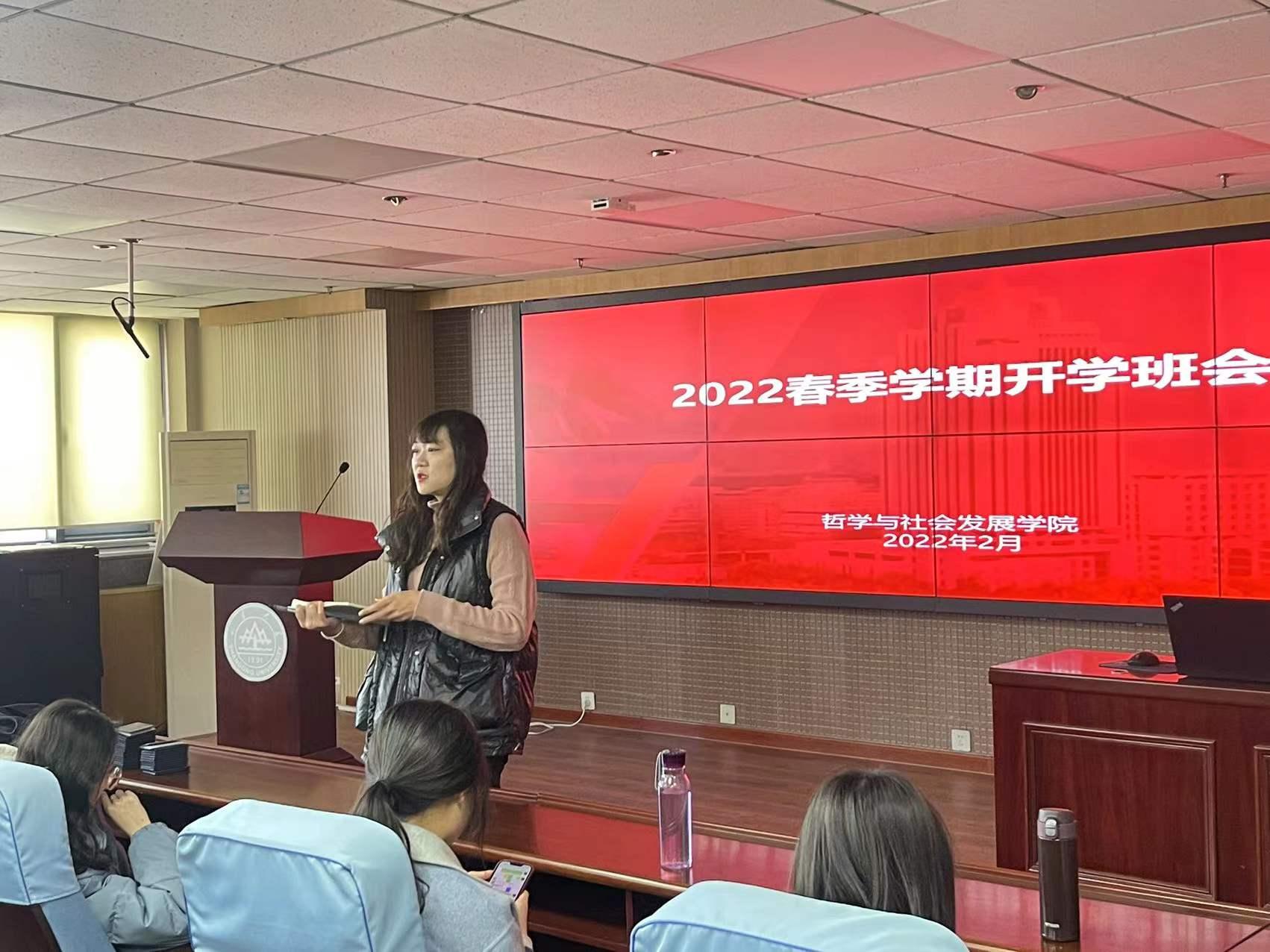新学期到来之际,哲社公司团委书记、本科生辅导员班梦姣分别于2022年2月21日下午四点、2月22日上午九点在知新楼A1521召开了2020级、2021级春季学期第一次班会,向同学们提出了新要求、表达了新期待。