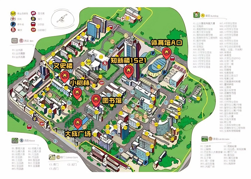 前十名完成六个地点打卡的员工可以在体育馆A口或大成广场任一打卡点领取山大文创笔记本。期待各位员工的踊跃参与!