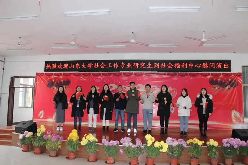在沂水县实习期间,11位社会工作专业硕士研究生结合当地社会福利中心老人及儿童照护服务的重点工作开展专业实习,公司分管研究生教育的副经理陈坚教授也在周末赶到沂水县社会福利中心进行教学督导。同学们深入敬老院、老年公寓、儿童福利院等进行实地考察探索,调研县域社会工作人才培养和专业机构设置情况,了解社工在为老服务实践中所发挥的作用;还在福利中心开展《社工价值理念在集中供养老人照护中的应用》专题培训,讲解和分享了护理人员在一线服务过程中的技巧和自我解压方式,并现场教授手指操。培训深入浅出,生动有趣,得到护理人员的一致好评,奠定了社工与养老机构对口合作的良好开局。在随后与福利中心的联欢会上,大家准备了喜闻乐见的三句半与合唱串烧,展现了新时代老员工的青春活力和激情;节目间隙,还为老人发放了公司捐赠的过冬棉袜及食品,为老人们带去冬日的关怀与温暖。