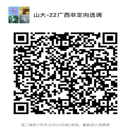 另外,请报名的同学扫码入群,二维码失效后可通过电子邮箱“sdjcgggl@163.com”联系工作人员,备注“姓名-公司-广西非定向选调”及时入群。
