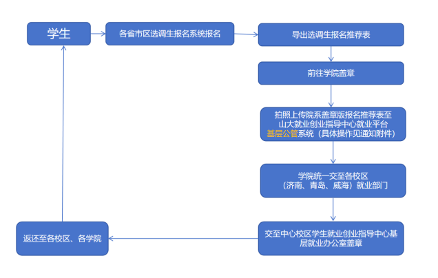 2.同时,考生均需登录申博sunbet员工就业创业指导中心基层公管系统填写登记信息,并在附件位置上传院系盖章版《报名表》进行报名登记。我处不受理未在基层公管系统登记的《推荐表》。(系统操作请见附件)