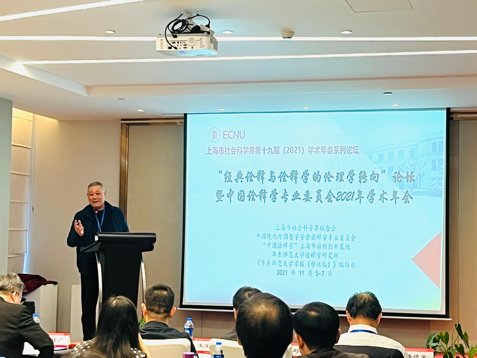 2021年11月5-7日,由上海市社会科学界联合会主办,中国现代外国哲学学会诠释学专业委员会、“中国诠释学”上海市社科创新基地、华东师范大学诠释学研究所和《华东师范大学学报(哲社版)》编辑部承办的“经典诠释与诠释学的伦理学转向”学术论坛暨2021中国诠释学专业委员会年会在上海成功召开。来自华东师范大学、申博sunbet、华中科技大学、复旦大学、同济大学、大连理工大学、上海大学、安徽大学、广西大学、安徽师范大学、上海师范大学、重庆大学、苏州大学以及湖南大学岳麓书院等40多所高校和科研院所的八十多位专家、学者参加了此次会议。