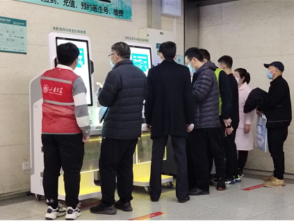 活动现场,同学们身着红色或绿色的工作马甲,认真坚守在各自的岗位上,用热情的态度、文明的语言,积极为患者提供服务。同学们帮助前来就诊的患者熟悉医院环境和诊室分布,为患者提供挂号引导和分诊咨询,并指导患者使用挂号机,以及处理部分突发情况等。通过志愿者对患者的接、陪、送、问、答、帮全程服务,把患者入院、诊疗等各个环节顺利衔接起来,使医生与患者在诊疗过程中很好地配合,给病人及家属带去方便、舒适、快捷和满意,深受患者和医务人员的欢迎。来院患者纷纷表示,这些老员工很有爱心,让人觉得很温暖。