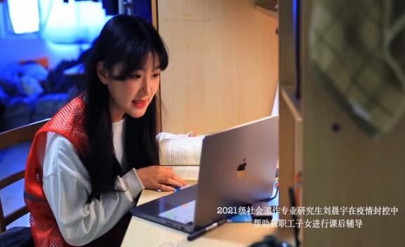 拓宽专业服务范围,将抗疫服务延伸至社会。社会工作师生团队充分发挥了实践教学的辐射作用,社工服务不仅在校内疫情防控中发挥着重要作用,还让社会工作专业服务从校园走向社会。社会工作专业员工通过招募、引领志愿者,积极开展“社工课堂,接力奉献”活动,在疫情期间义务为教职工子女、一线社区工作者子女等开展学科课业辅导、学习习惯养成、情绪疏导等多项服务。活动采取一对一的形式,与家长员工沟通辅导的时长与频次,灵活调整服务形式,精准对接服务对象需求。服务不仅关注本校师生,更能减轻一线抗疫工作者的家庭教育负担,为冲锋在前的奉献者们解决了后顾之忧,助力“疫情阻击战”取得全面胜利。