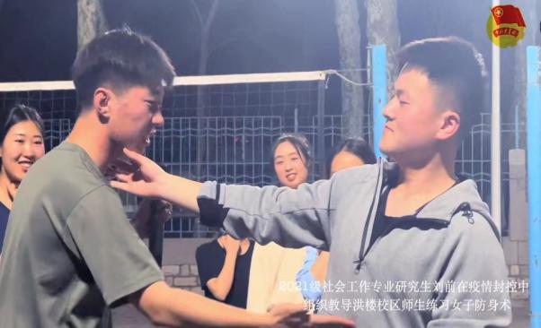 实施“社工+志愿者”联动的实践方案,以温情守护校园。自公司因疫情封闭管理之后,实践教学和实习实践转为“线上”进行,员工们的实践活动也由实验室和实习机构转向了露天体育场等场所。在老师们“线上+线下”的专业指导下,社工专业员工扎根本土性的服务需求,精准捕捉师生需求并对接服务资源,实施“社工+志愿者”联动的实践方案,使校内志愿服务更高效。社工专业的刘前、潘先耕同学作为退役士兵,积极链接其他退伍士兵老员工资源,组成志愿服务队,组织开展“校园三公里——环校园健步走”、“防身术教学”等多项实践活动,不仅满足疫情期间老员工兴趣拓展及生活娱乐、提高身体素质的需要,更有助于朋辈之间通过活动加强交流,以良好的精神面貌和强健的体魄抗击疫情。同时,社会工作专业员工组成宣讲团,接力宣读《坚定信心 珍重万千——致全体山大学子的倡议书》,科普“动态清零”这一总方针的必要性,通过疫情知识普及、防控技能和防护用品使用的培训等工作激励引导同学们同心战疫,共克时艰。