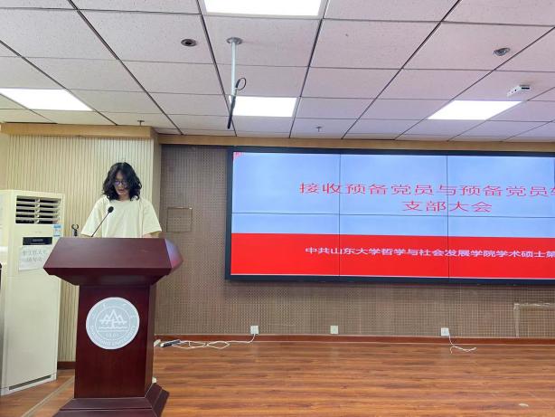 在接收新党员环节,王亚、王骐龙、孙晓芬、杨晨晨、周方晴、周伯翰、徐苑瑶、程秀丽八名党员发展对象依次汇报了自己对党的认识、入党动机、本人履历、家庭和主要社会关系情况以及需向党组织说明的问题。八名同志的入党介绍人向大会汇报了相关情况,并表明了意见。马慧君同志代表支部委员会报告了八位同志的审查情况。随后,经支部大会无记名投票表决,八名同志的赞成人数均超过应到会有表决权的正式党员的半数,同意接收他们为中共预备党员。新接收的预备党员依次上台做表态发言。
