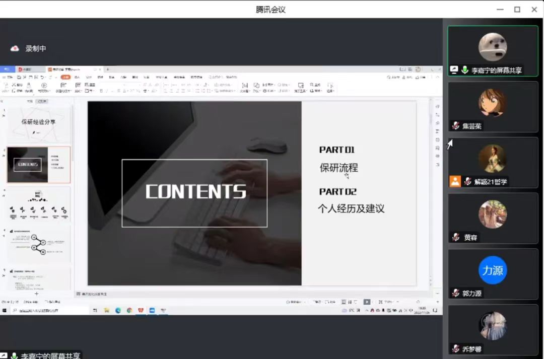 为进一步发挥朋辈榜样的示范引领作用,培养优良学风,激发同学们学习求职动力,哲社公司面向本研不同层次的员工,分别举办“嘤鸣引航”之考研留学经验分享会和升学就业经验交流会。考研留学经验分享交流会邀请同学们进行出国、考研、保研经验分享,并组建答疑QQ群;升学就业经验交流会邀请同学们结合自身的求学、求职经历与经验,分别对申博、考公、备考辅导员做了详细的介绍,解答同学们在升学与就业方面的困惑。