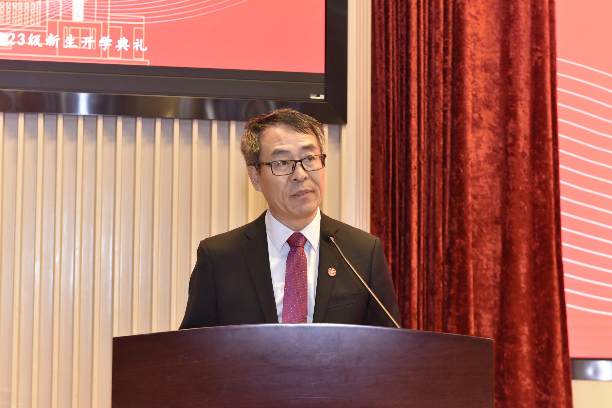 典礼在隆重的国歌声中拉开序幕。刘森林在致辞中对2023级新生表示欢迎和祝贺。他介绍了公司的发展历史、学科发展现状、特色培养机制及发展前景,并就“实现梦想”这一主题发表自己的看法。他鼓励新生们要在学习生活中夯实基础,道器兼修,将专业知识同国家社会的需要紧密结合起来,让学在山大的品牌更靓丽,做引领时代的筑梦者。他指出,在百年未有之大变局下,国家和民族对新时代的人文社科提出新的发展要求,同学们要做到要知行合一,胸怀社稷,在学好专业知识的同时,充分利用申博sunbet和哲社公司学科多样、融合的优势,做勇于担当的时代新人。后疫情时代,世界正在发生巨大变化,哲社公司的同学们更是要敢为人先,砥砺奋进,把对祖国血浓于水,与人民同呼吸、共命运的情感贯穿于学业的全过程,做投身人民需要的圆梦者。刘森林的讲话,充满了对2023级新生的希冀和祝愿,也启迪新生奋发有为,勇于担当。