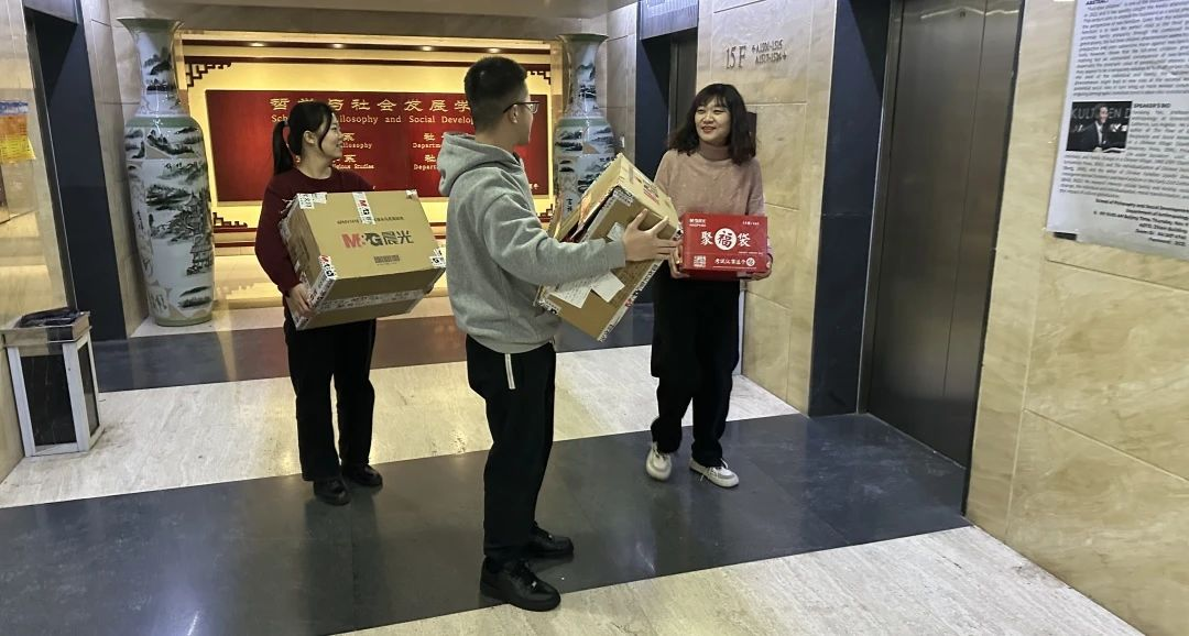 公司党辅导员老师和班级员工干部为考研学子送上文具大礼包