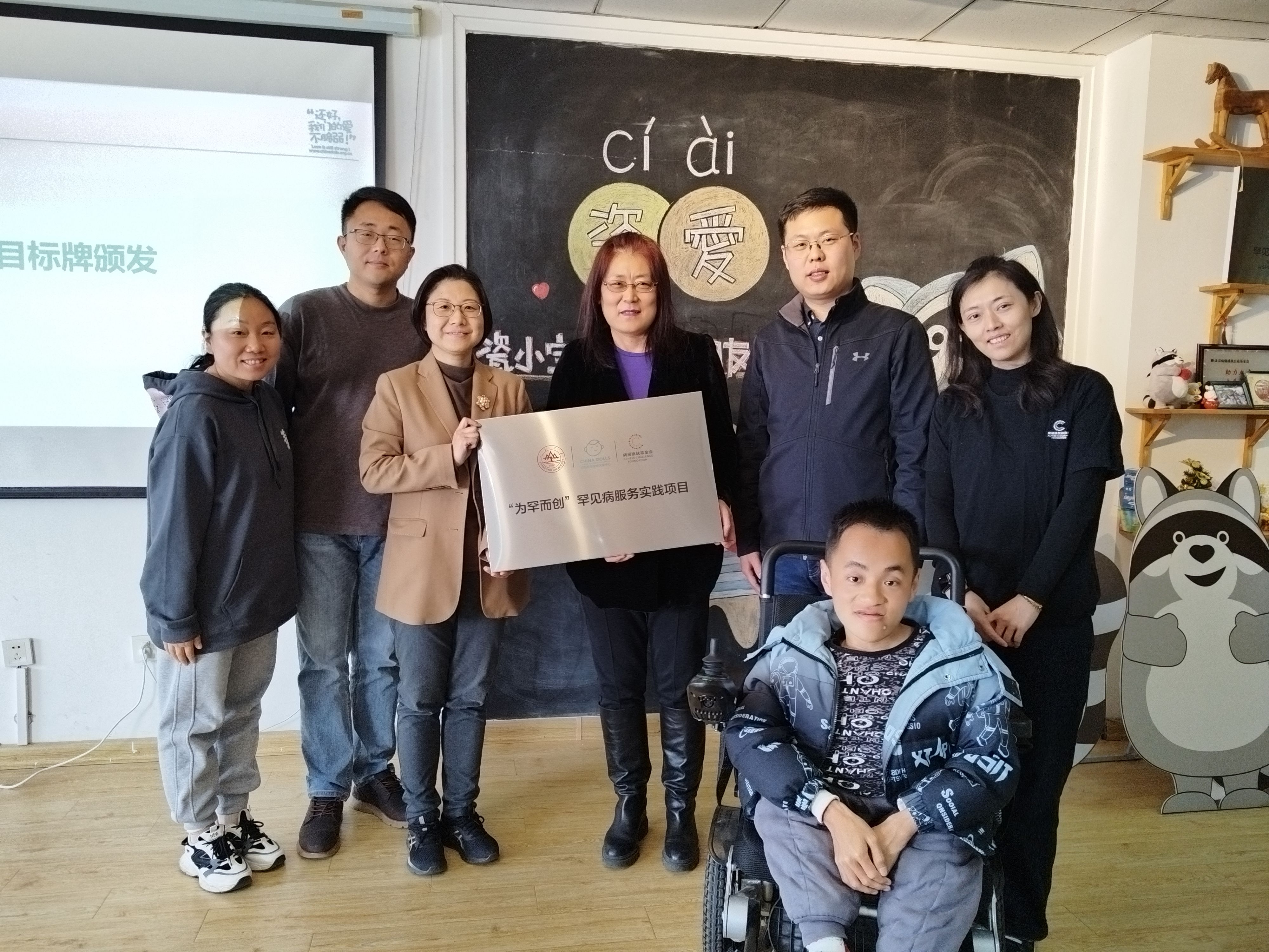 参会双方一起颁发项目标牌,举办捐赠仪式,宣告“为罕而创”罕见病服务实践项目正式启动。
