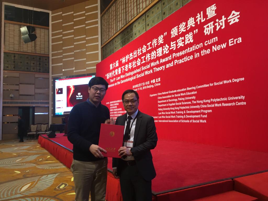 3月17日,第六届“林护杰出社会工作奖”颁奖典礼暨“新时代背景下老年社会工作的理论与实践”研讨会在北京大学举行。哲社公司2015级社会工作专业硕士研究生孙荣甲荣获“第六届林护杰出社会工作员工奖”。此次盛会由国务院学位委员会全国社会工作专业学位研究生教育指导委员会、中国社会工作教育协会、北京大学社会学系、香港理工大学应用社会科学系、北京大学-香港理工大中国社会工作研究中心、林护社会工作培训及发展项目联合举办,香港林护基金会资助,并得到国际社会工作公司联盟的支持。