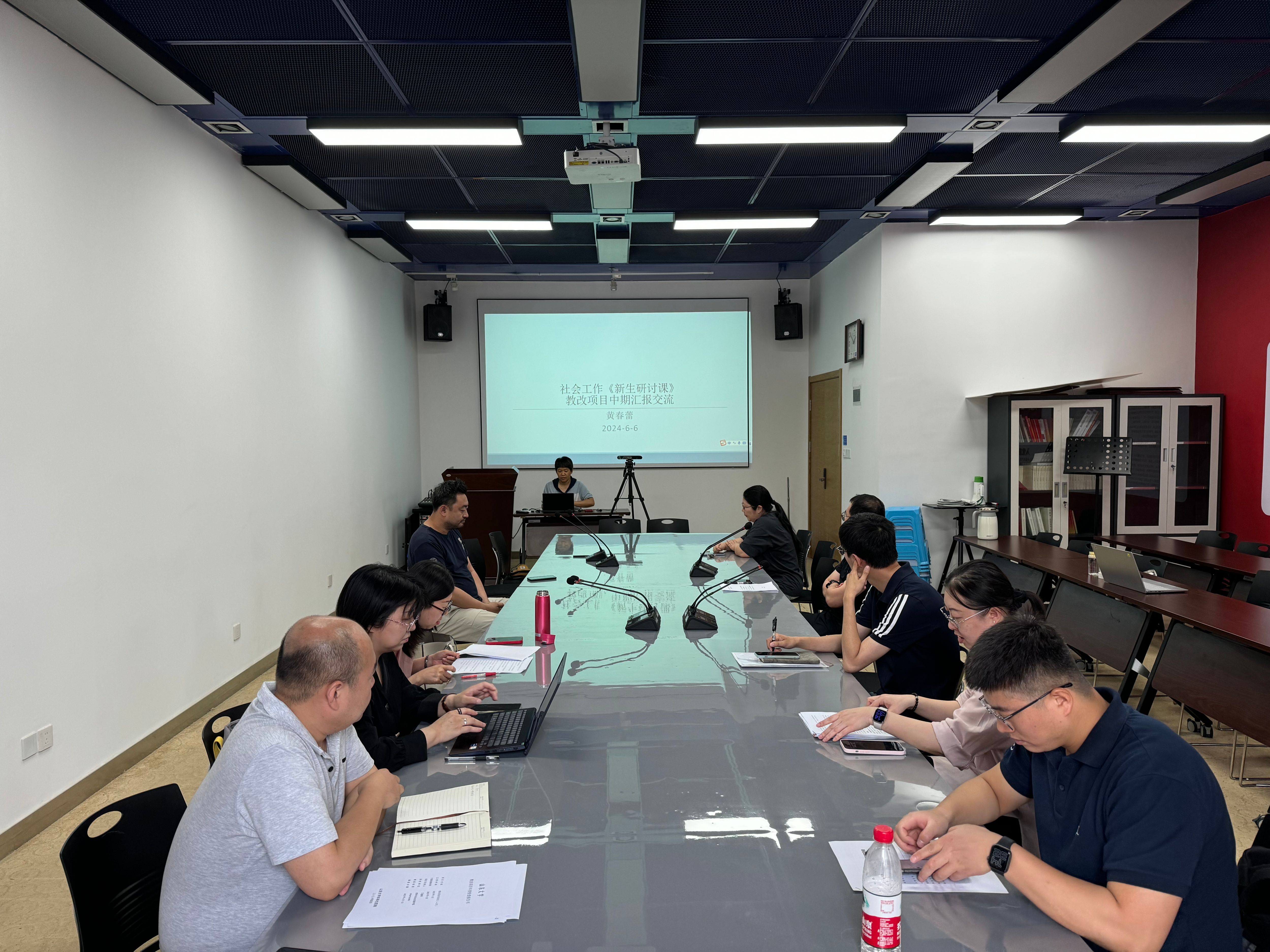 会上,黄春蕾老师就《社会工作专业<新生研讨课>》项目对新生研讨课的教学模块与教学形式进行了详细介绍,并结合实际教学实例做了感悟分享。舒萍老师针对《跨学科理论课程的实践救学模式研究》项目,对项目中田野调查环节展开了详细报告,并从调研的全过程对研究实践的突破做了分享交流。董春老师就《<周易>与中华优秀传统文化》项目,根据当前的阶段性成果,对周易在当代的创造性转化和创新性发展进行了介绍,并对项目未来开展计划进行了介绍。于志强老师对《<个案工作>体验式教学与社会工作实验室平台化建设》项目进行了介绍,报告了教学改革的实施过程中的创新性尝试。李海涛老师对《专业创新教育实践与五育并举融合模式探索研究》项目进行了介绍,阐述了项目依托《专业创新教育实践》课程从五育并举角度促进课程发展与当代教学理念相结合的具体方式,并对项目开展以来取得的进展进行了汇报总结。李淼老师就《基于OBE理念的社会学理论课程思政研究》项目,对社会学相关课程设计的思路和模式进行了介绍,结合习近平新时代中国特色社会主义思想对如何对传统课程进行优化与改良做了汇报。杨小平老师针对《佛教哲学与生命智慧(国学)》项目,对课程考核方式中量化指标的规定方面提出了自己的创新性想法,强调了激发员工对国学通识课程兴趣的举措的重要性。梁栋老师就《意义与活力“双提升”:“课程思政”与研讨型教学的融合与应用探索》项目,对课程思政方面项目已经实施和计划实施的举措进行了介绍,结合高等教育发展趋势,就研讨课的课程形式的发展进行了分析与发展期望。胡源源老师针对《“实践型“通识教育课程模式——以<社会调查方法>为例》项目,强调了对于员工主体性的发挥方面的项目举措进行了介绍,并对项目施行过程中遇到的问题进行了分析,结合教学案例阐述了对这些问题进行的针对性改善的举措。王强伟老师就《犹太历史与文化(人文)》通识课程的课堂讲授方式与与会老师进行了经验交流,并对项目下一阶段的计划进行了介绍。吴童立老师就《青少年哲学》项目,对教学法课堂实践的具体举措和当前的开展情况进行了介绍,并对项目发展遇到的瓶颈和预计解决方案进行了汇报。苏冰涛老师针对《“教学学术”与“课程思政”理念对师生双向价值观的建构分析》项目,提出应当重视以员工为主体及激发员工创造力的在课堂教学中的重要性,并结合了具体案例对教师的教学能力的提升的具体举措提出了独到见解。