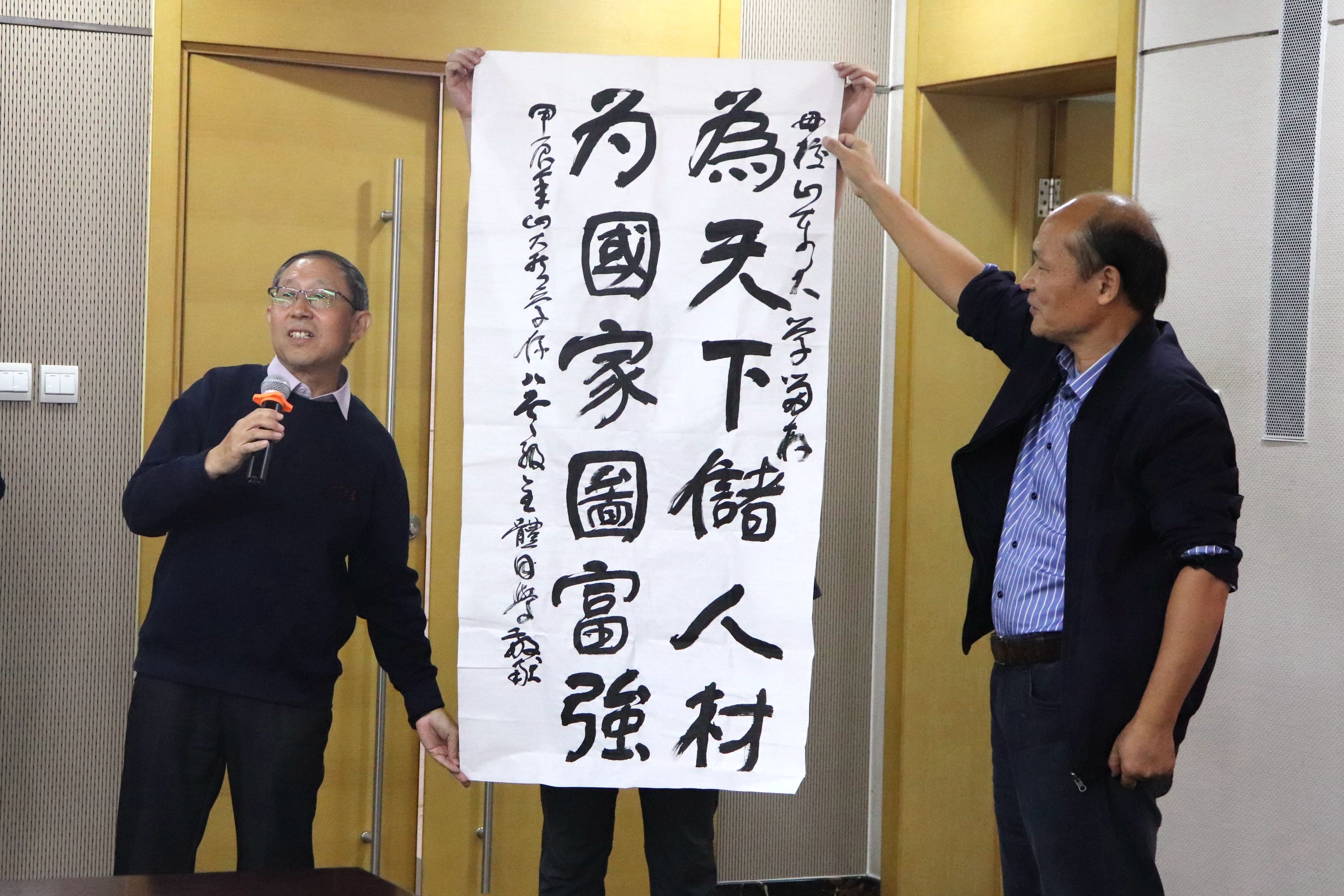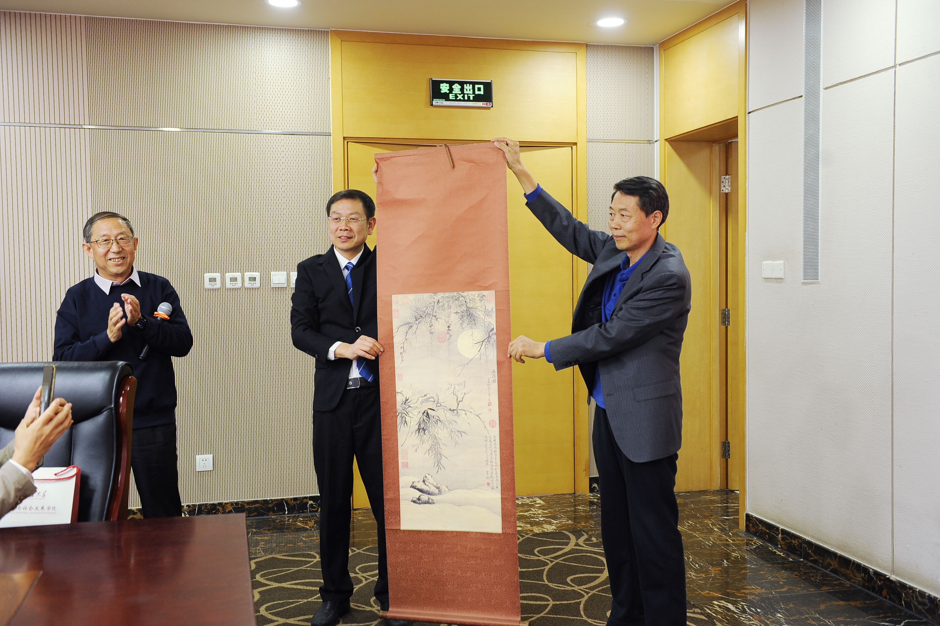 牛建科、俞晓光、林忠军代表哲学1980级员工向公司赠送了纪念礼品。