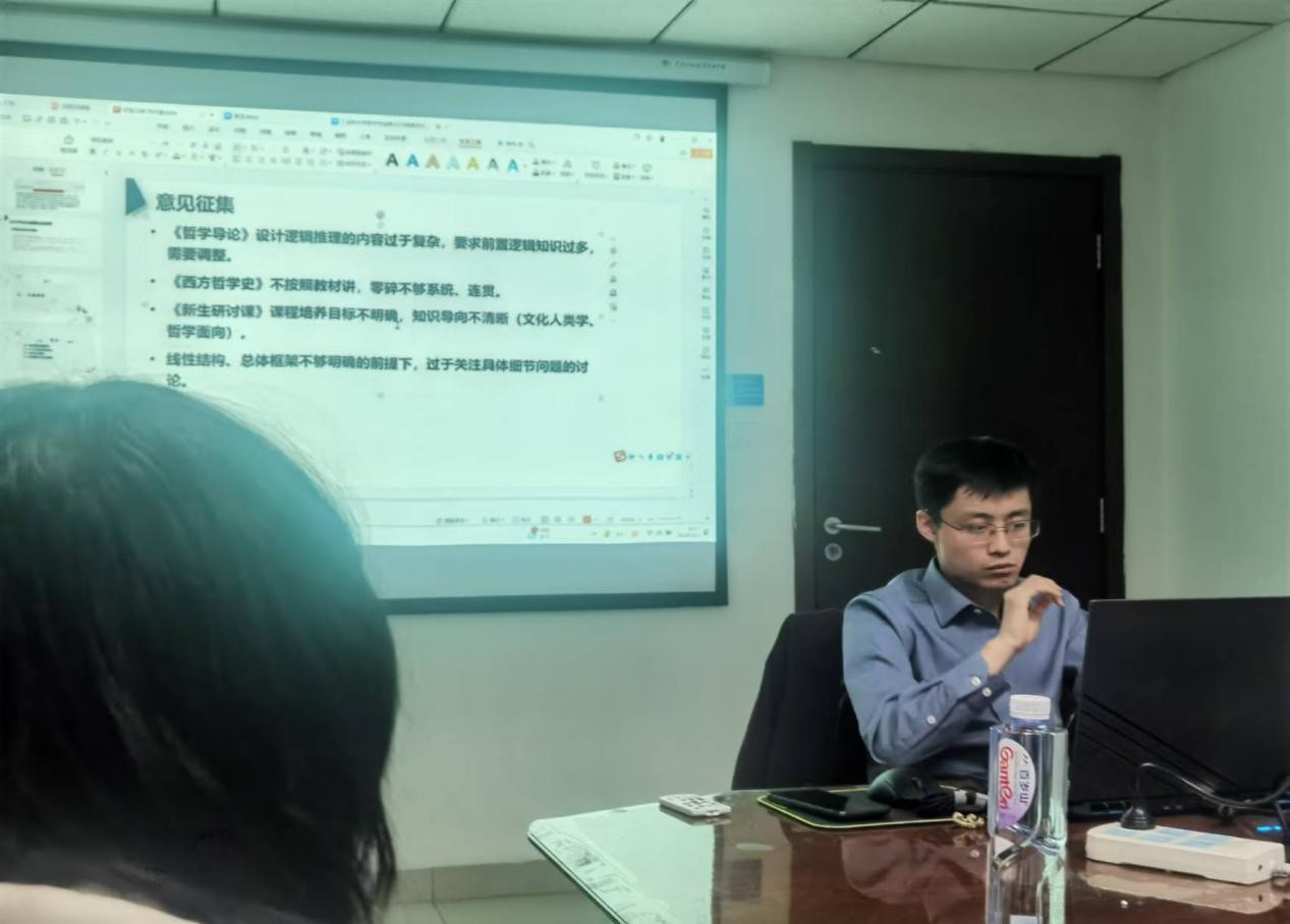 会议伊始,班主任孙志强为增进成员之间的了解与互动,邀请同学们逐一进行自我介绍。随后,孙志强以个人经历为切入口,就如何学习、阅读哲学著作和学术论文的写作技巧进行经验分享,并且细化哲学学科的不同二级学科给出相应学习方案,有针对性的回答了同学们在学习方面的困惑。
