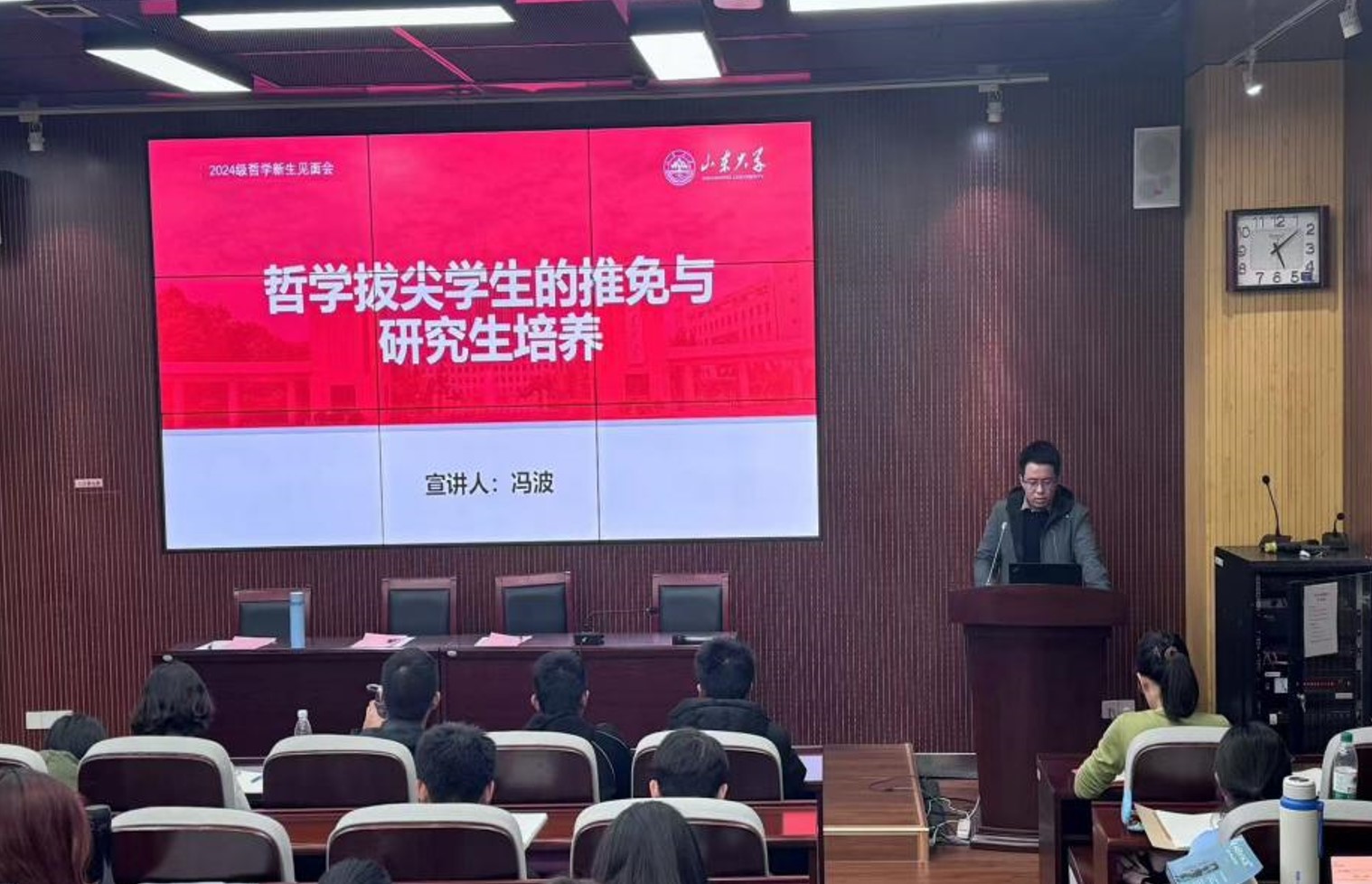 冯波就哲学拔尖员工的推免与公司产品进行介了绍。他首先比较了强基计划、拔尖计划2.0与哲学类的培养模式,为同学们解答在不同培养模式下推免工作将如何开展,接着详细阐述研究生阶段的深化培养策略,包括尖兵计划、青苗计划以及博士生论坛等关键举措。