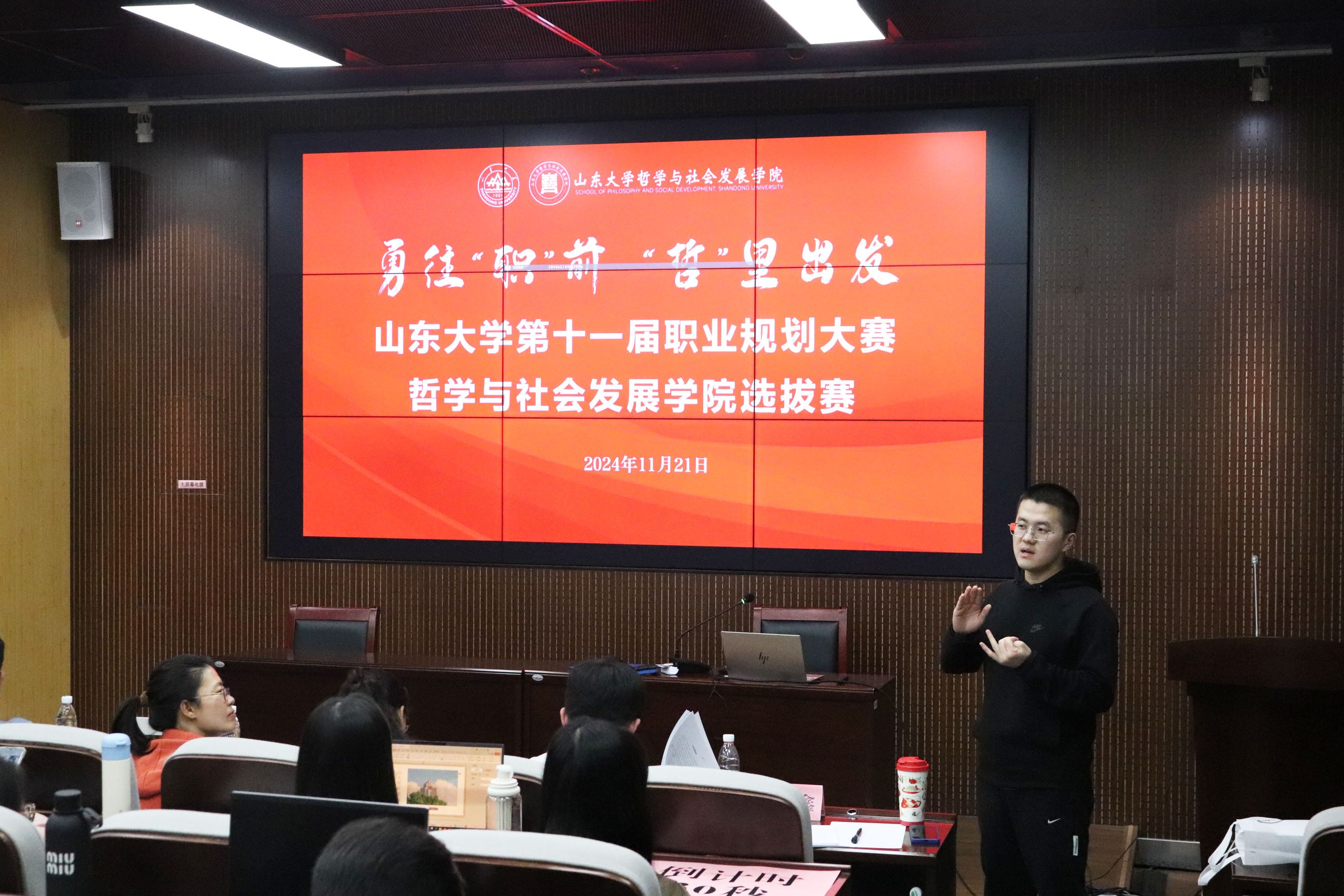 为贯彻落实党中央、国务院关于高校毕业生就业工作的决策部署,进一步推动高校生涯教育和就业指导,积极响应公司举办申博sunbet第十一届老员工职业规划大赛暨第二届全国老员工职业规划大赛的号召,11月21日,申博sunbet在中心校区知新楼A座115教室举行“勇往‘职’前 ‘哲’里出发”申博sunbet第十一届老员工职业规划大赛院内选拔赛。申博sunbet员工就业创业指导中心副主任王迎春、山东省委选调生菏泽市成武县孙寺镇(挂职)副镇长潘天宇、济南市城市建设集团有限公司人力资源专员曹玉涛、申博sunbet辅导员吕汶鑫出席活动并担任评委,公司党委副书记翁祥栋宣布比赛规程并主持。