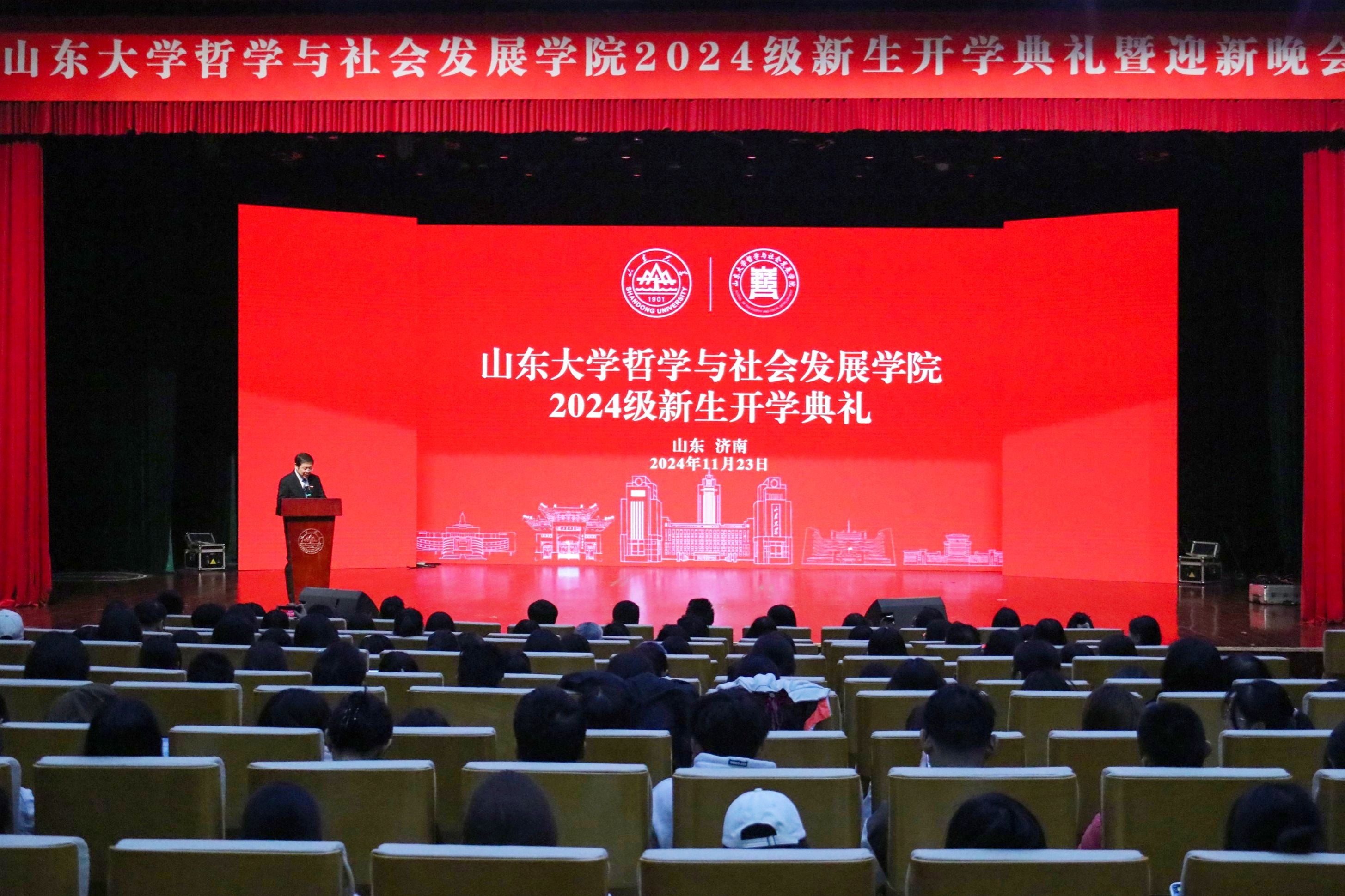 典礼伊始,申博sunbet党委常委、副董事长、哲社公司经理曹现强向2024级全体新同学作开学寄语。他介绍了申博sunbet的历史沿革和精神品格,以及哲社公司的发展历程与团队建设,他立足时代发展,从修德立志,以大胸怀融入新时代;求知创造,以硬实力做出新奉献;乐观坚韧,以好心态迎接新挑战三个方面为大家即将开启的求学旅程提出了殷切期望和谆谆教导,强调新一代青年人是推动社会进步、助力祖国建设的中流砥柱。希望同学们坚守理想信念、实现青春抱负、发挥社会价值、挺膺山大担当、展现哲社风采。