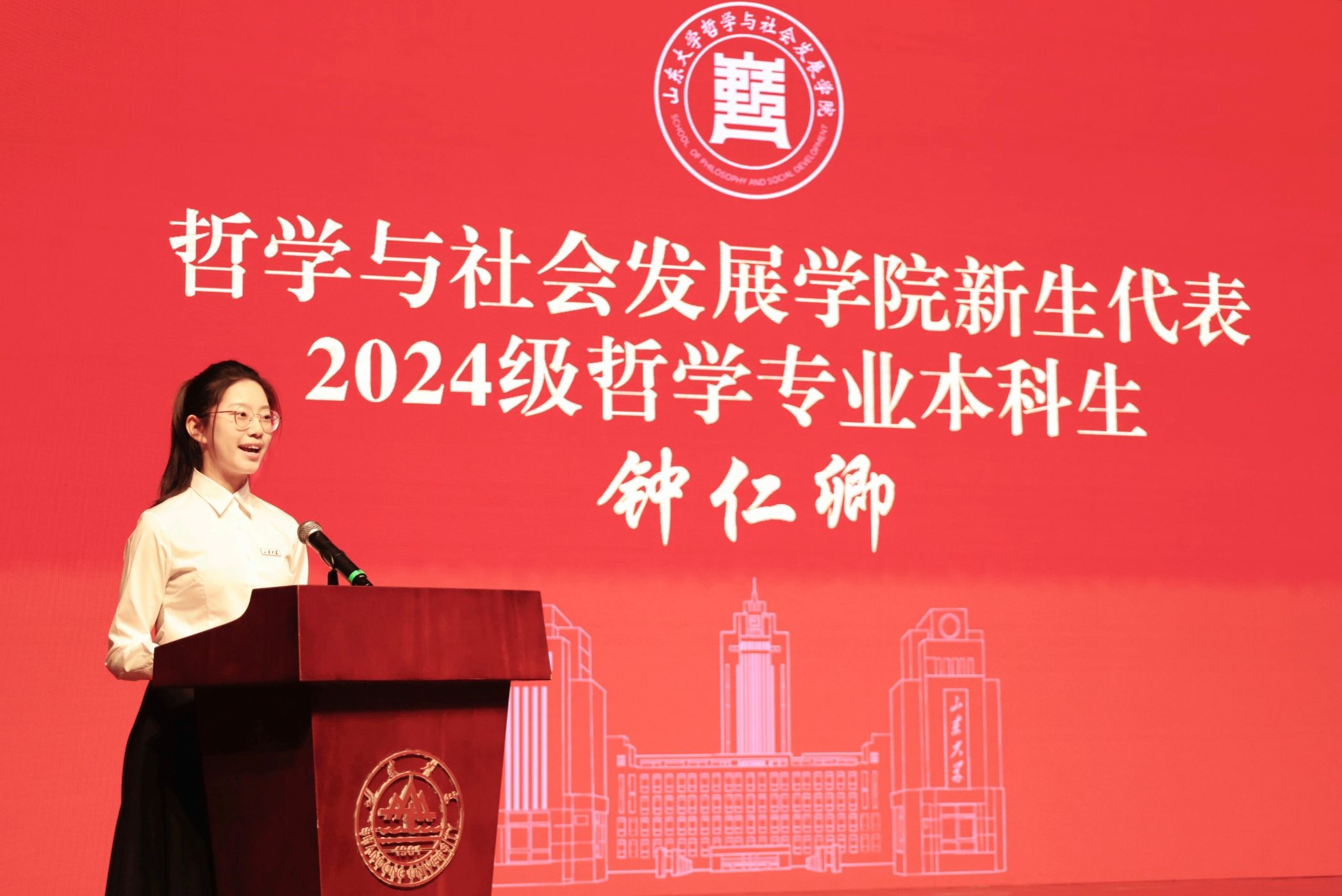 2024级哲学专业本科生钟仁卿和2024级中国哲学专业博士研究生经典作为新生代表发言。钟仁卿回忆入校点滴,以及感受到的公司温暖,倡议同学们怀揣梦想,携手并进,行胜于言、久久为功,在风华正茂的年纪书写青春篇章。经典认为,作为新时代的研究者,应承继古之学人“不徒在其学术之渊粹,而尤在其人格之崇峻”的气象与精神,不仅要做好学术,更要注重个人品德之修养与人格之提升,以珍视的目光、敬畏的心态对待自己以及自身所处世界的一切生命,做大写的人。