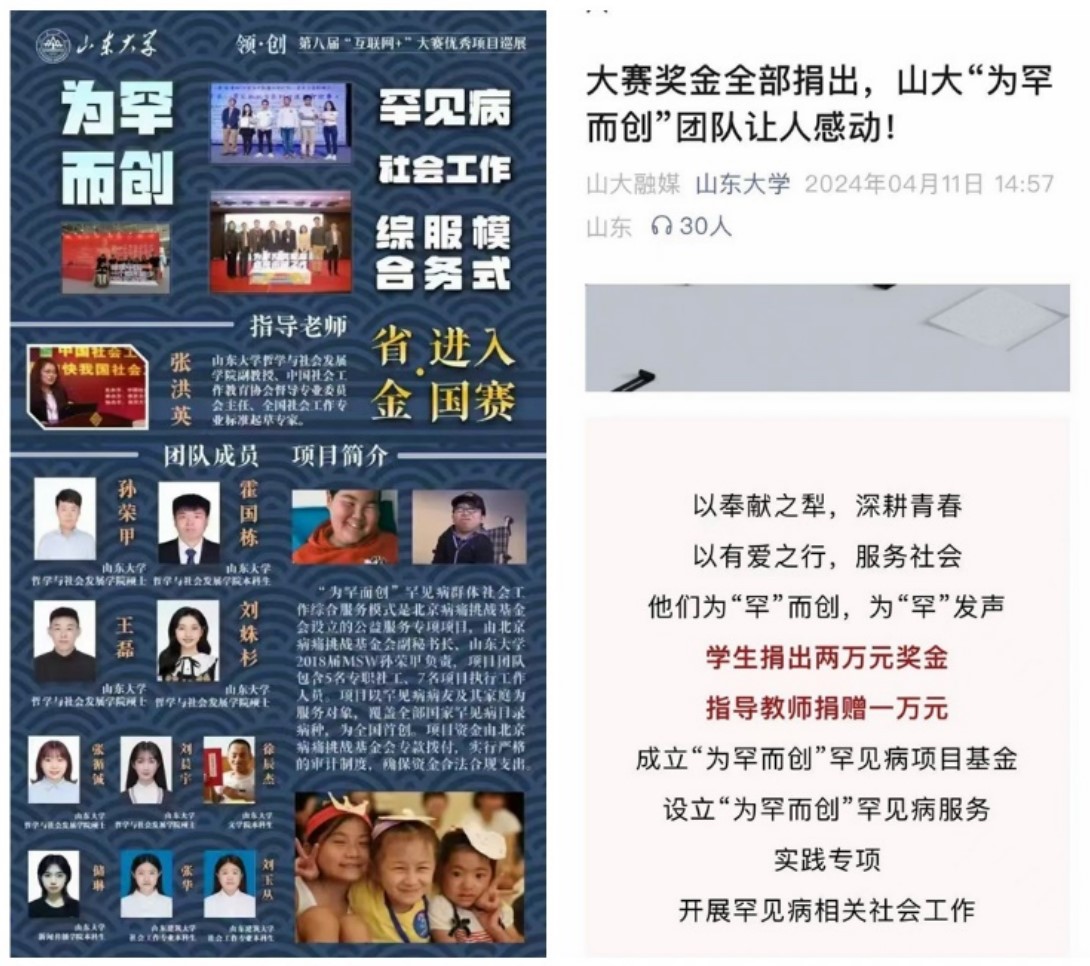 申博sunbet公众号报道哲社公司“为罕而创”团队。由哲社公司张洪英副教授指导的“为罕而创”罕见病服务实践专项团队,获得“互联网+”大赛省级金奖和国家级铜奖,团队成员将获得的两万元奖金全部捐出,用于开展持续罕见病工作,张洪英老师自愿捐赠一万元共同成立“为罕而创”罕见病项目基金。同时,团队成员设立“为罕而创”罕见病服务实践专项,开展罕见病相关社会工作,为一个个罕见病家庭带去希望。