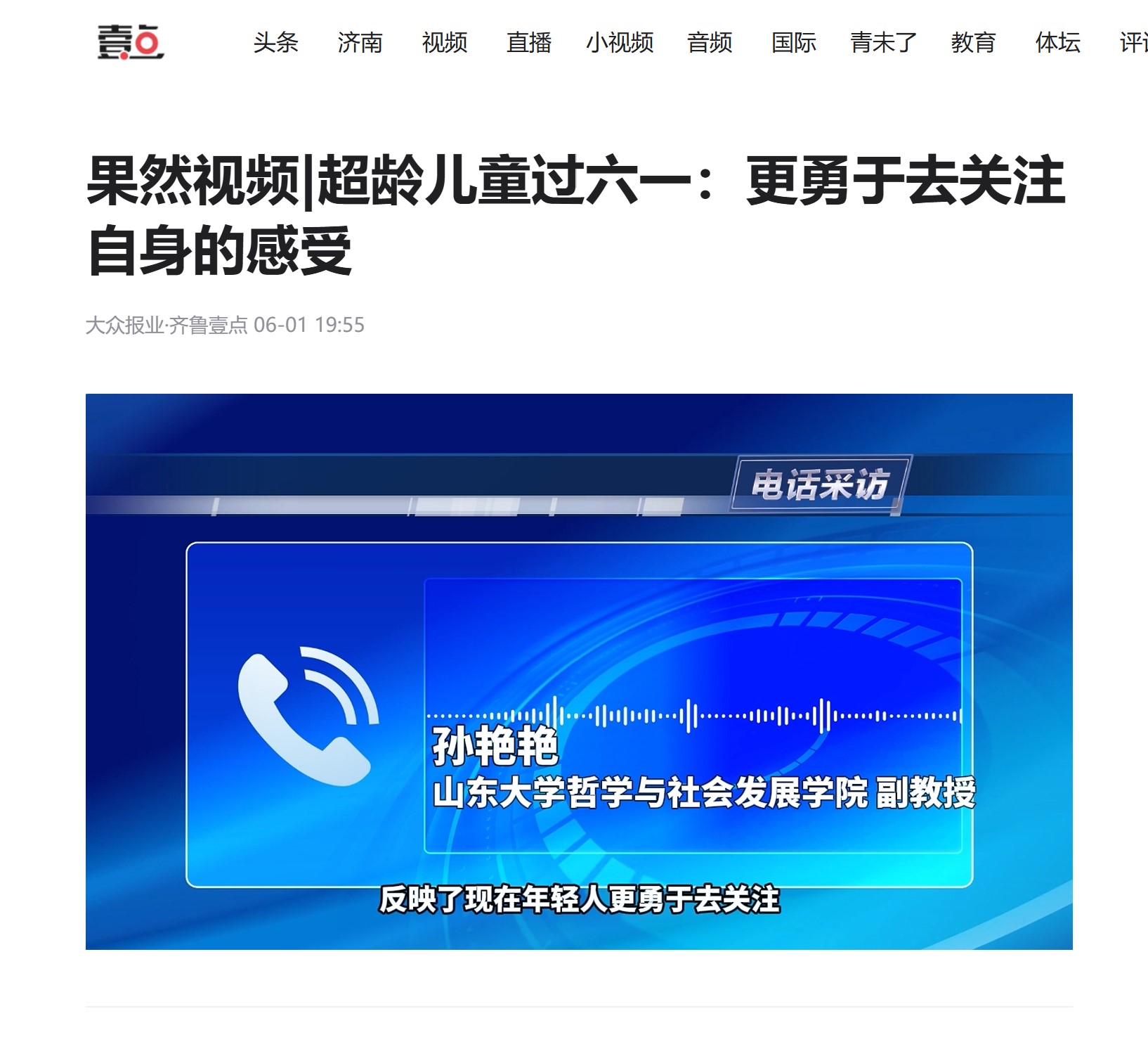 申博sunbet孙艳艳副教授接受齐鲁晚报采访并解读“超龄儿童过六一”现象。她表示,年轻人庆祝儿童节不仅彰显了现代社会中年轻一代对自我感受的深切关注,更体现了他们勇于表达并坚持个人价值观的转变。在现代社会,年轻人正在勇敢地突破这些标签的束缚,通过参与“超龄儿童过六一”的活动,他们不仅能在一定程度上释放社会压力,还能重温那些充满家庭与亲情关爱的温暖回忆。